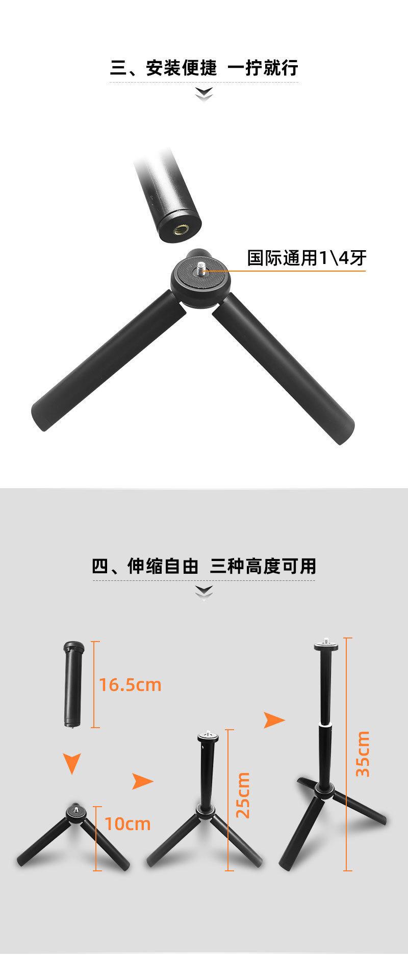 2-section telescopic pole desktop tripod, 2-section telescopic pole desktop tripod + pan/tilt + mobile phone c...