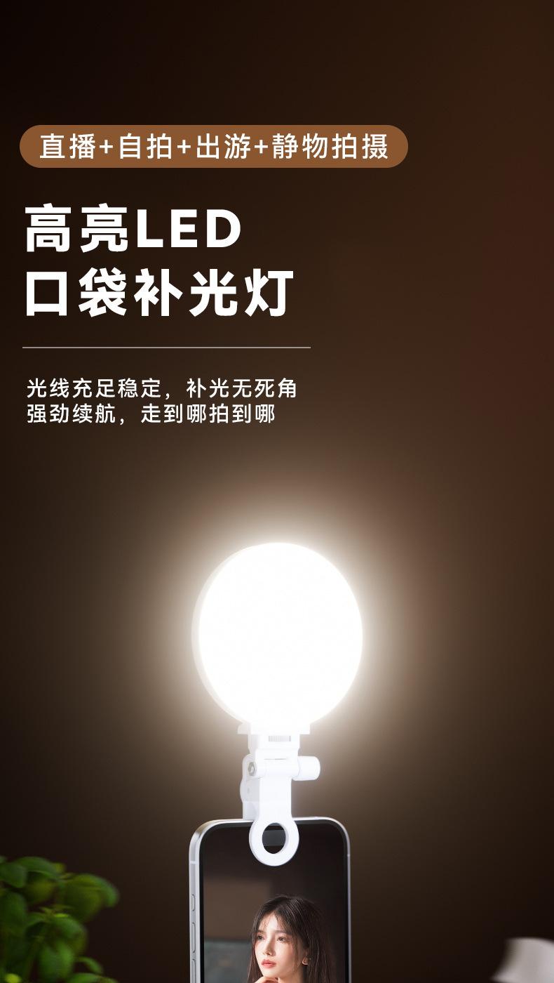 Luz de Relleno Redonda con Clip para Fotografía en Vivo Portátil Mini de Bolsillo de Mano Luz para Cámara Iluminación para Grabación con Teléfono