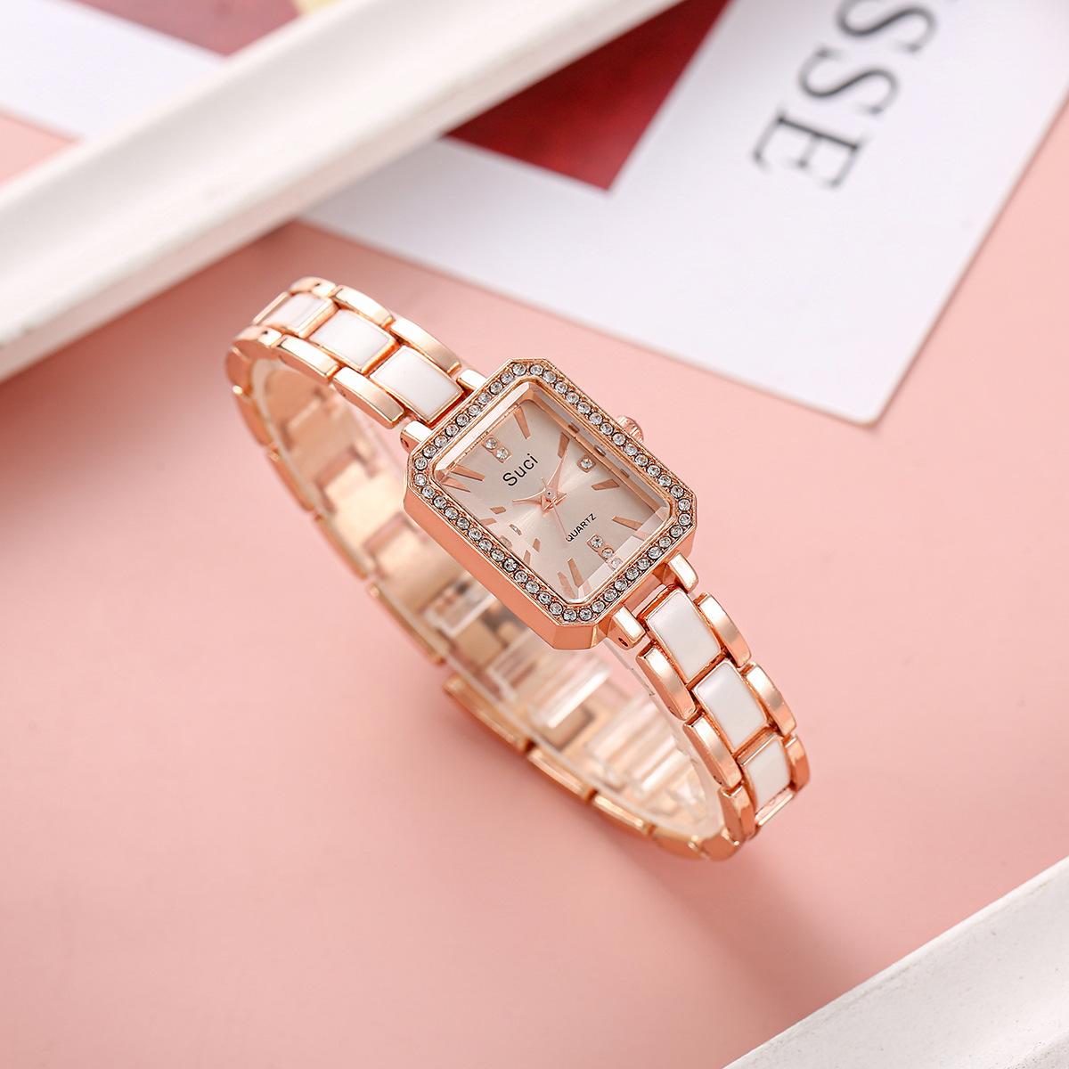 Reloj de Cerámica Sencillo y Personalizado para Mujer de Venta Caliente Transfronterizo, Reloj de Pulsera Cuadrado Moderno y Elegante, Versátil Reloj de Cuarzo para Estudiante