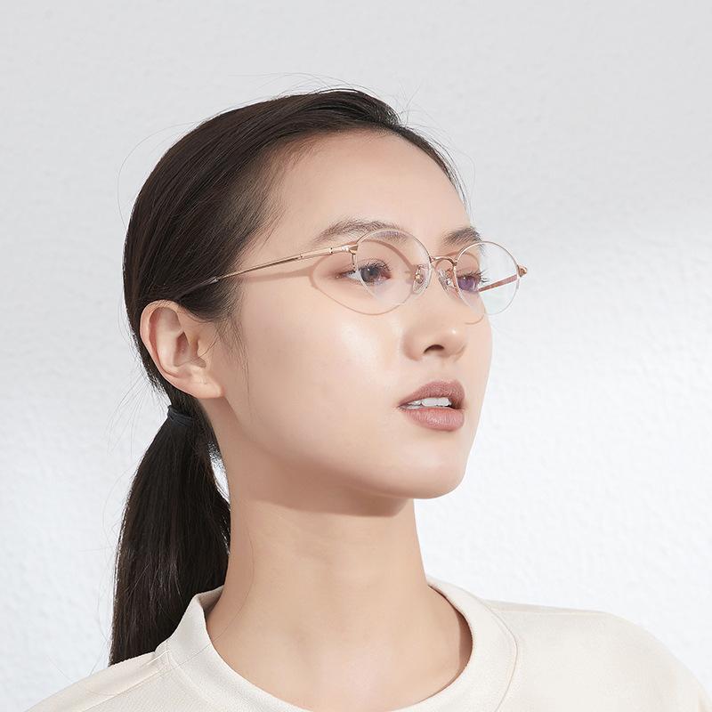 Armazón de Gafas de Titanio Puro de Medio Aro para Niña, Ultra Ligero, Gafas Planas, Celebridad Cibernética, Rostro Sencillo Libre, Armazón de Gafas Danyang