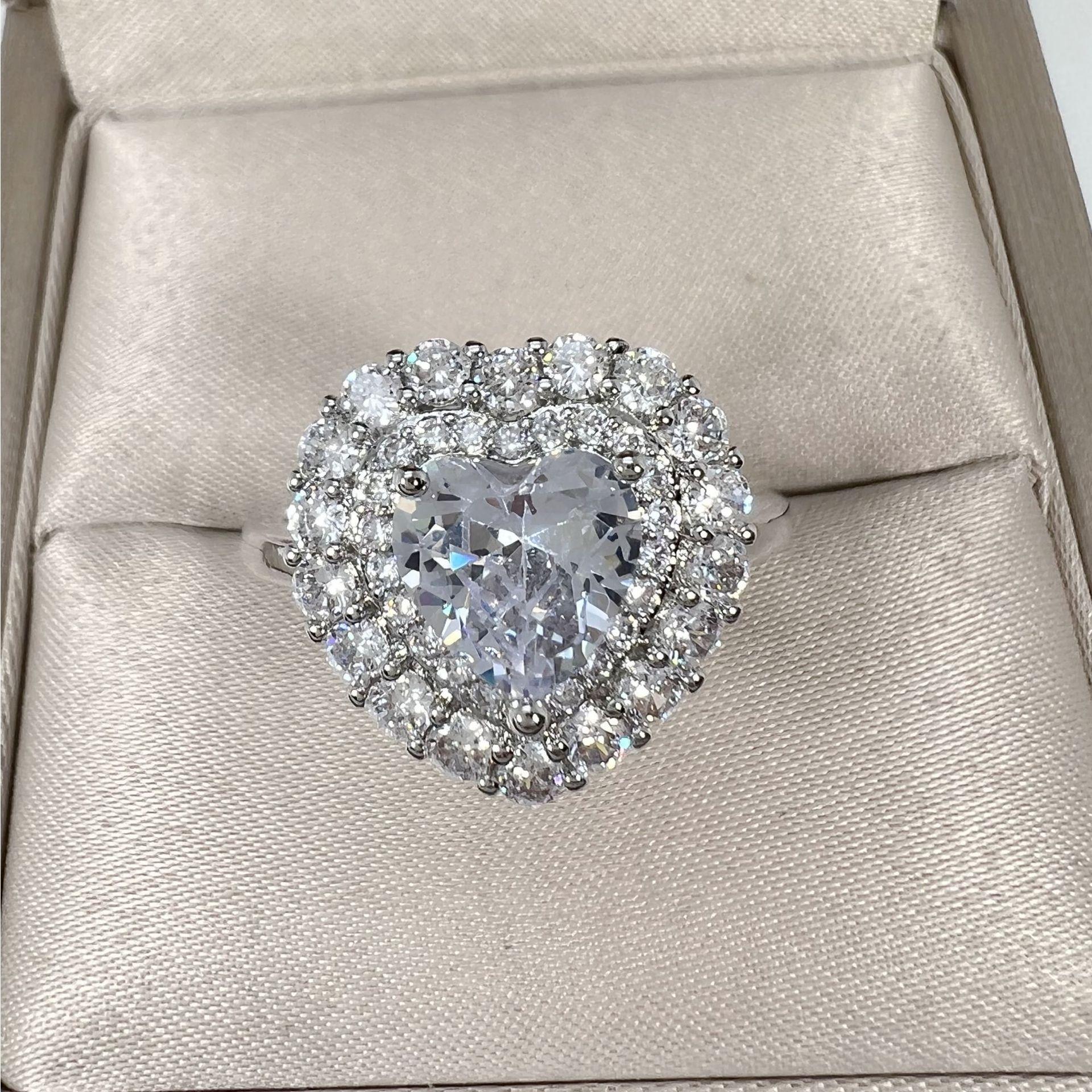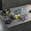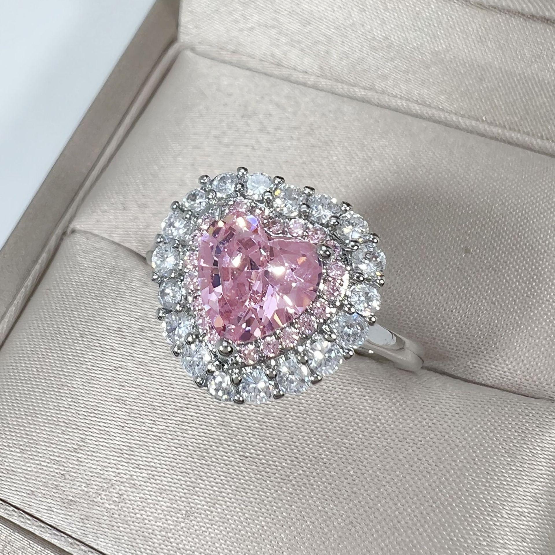 Anillo europeo y americano de lujo con diamantes y circonita en forma de corazón de durazno, diamante en forma de corazón, diamante grande en forma de corazón, anillo de diamante con gema de color, anillo de compromiso al por mayor