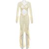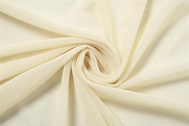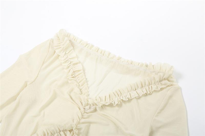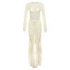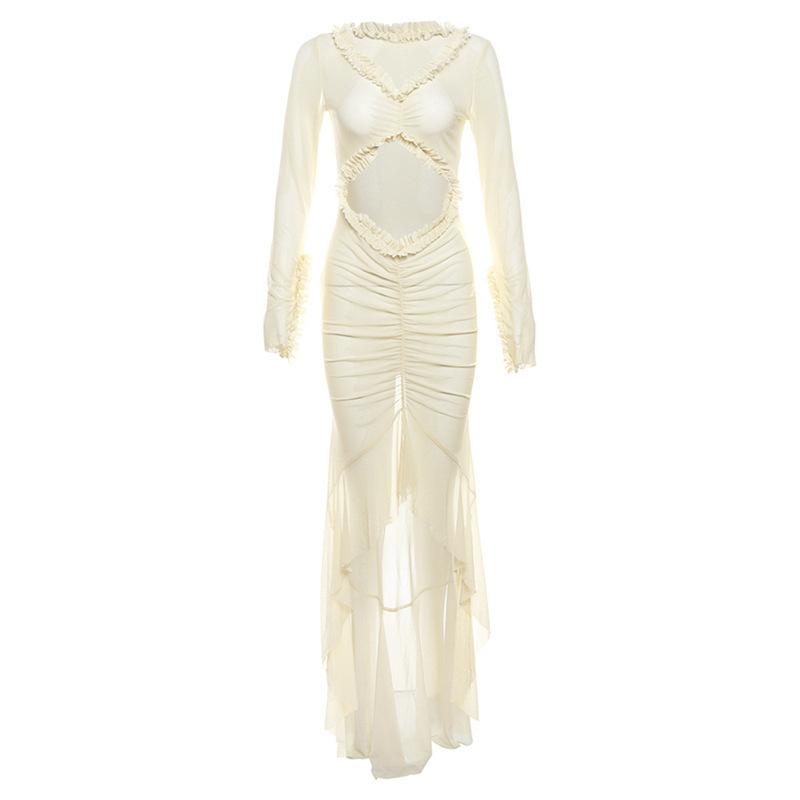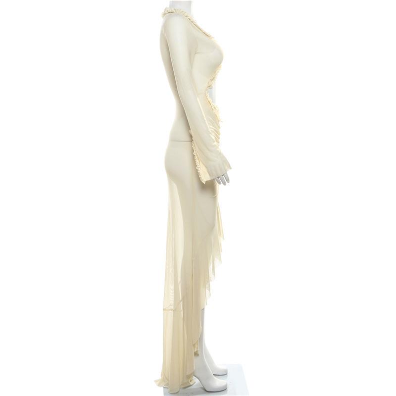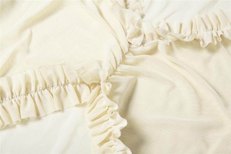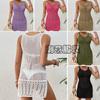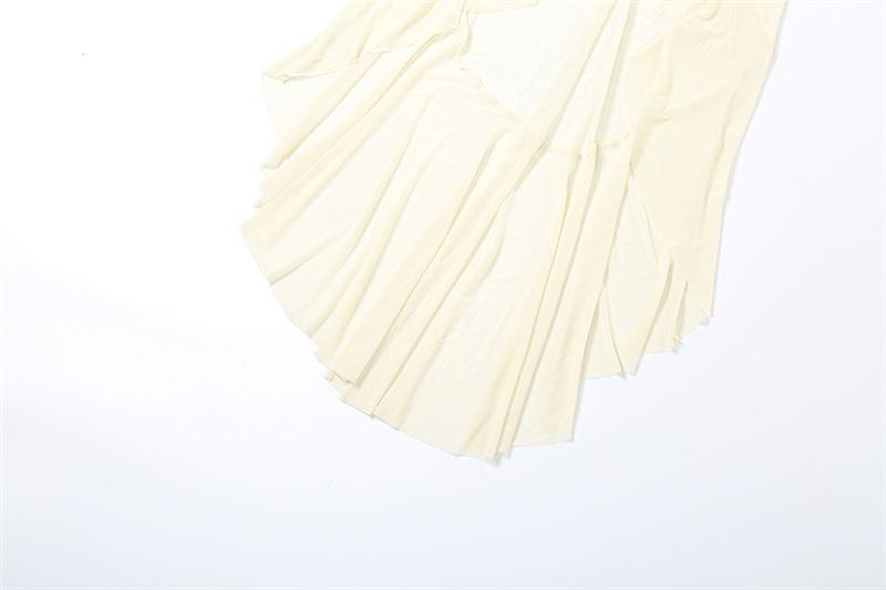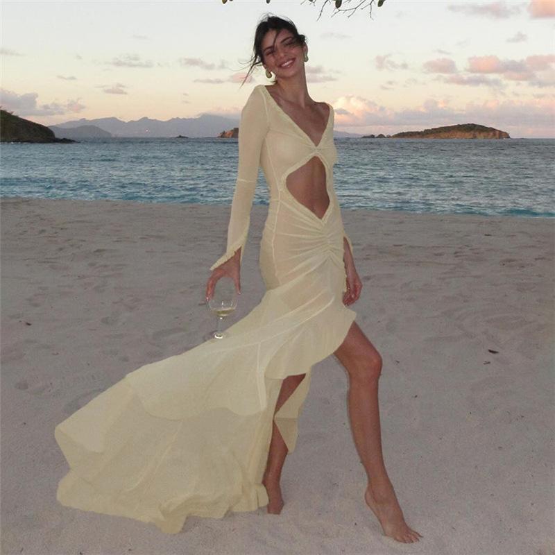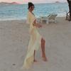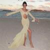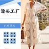 Europeo y Americano transfronterizo verano nuevo estilo vacacional playa transparente sexy calado fruncido encaje abertura vestido ajustado