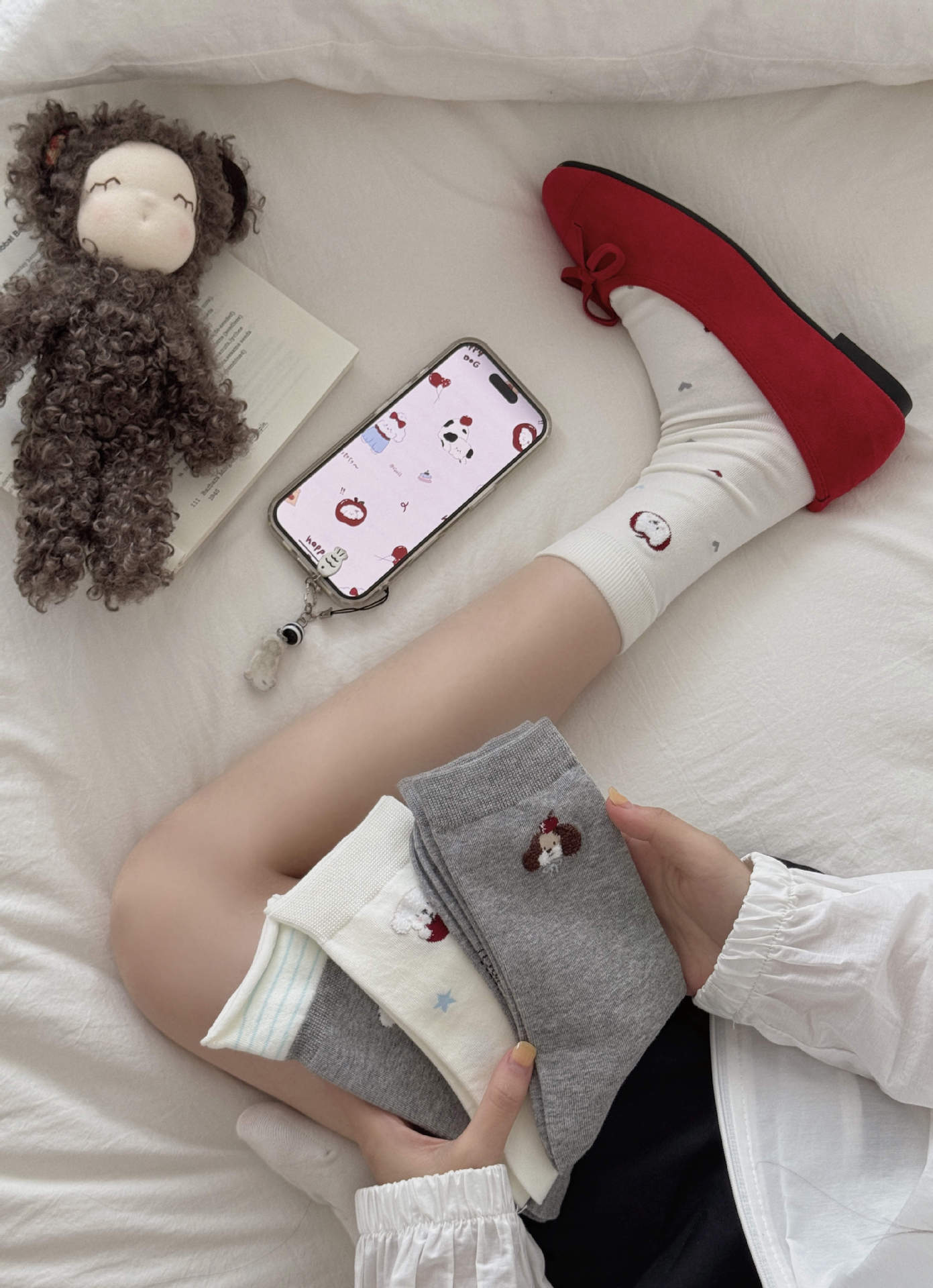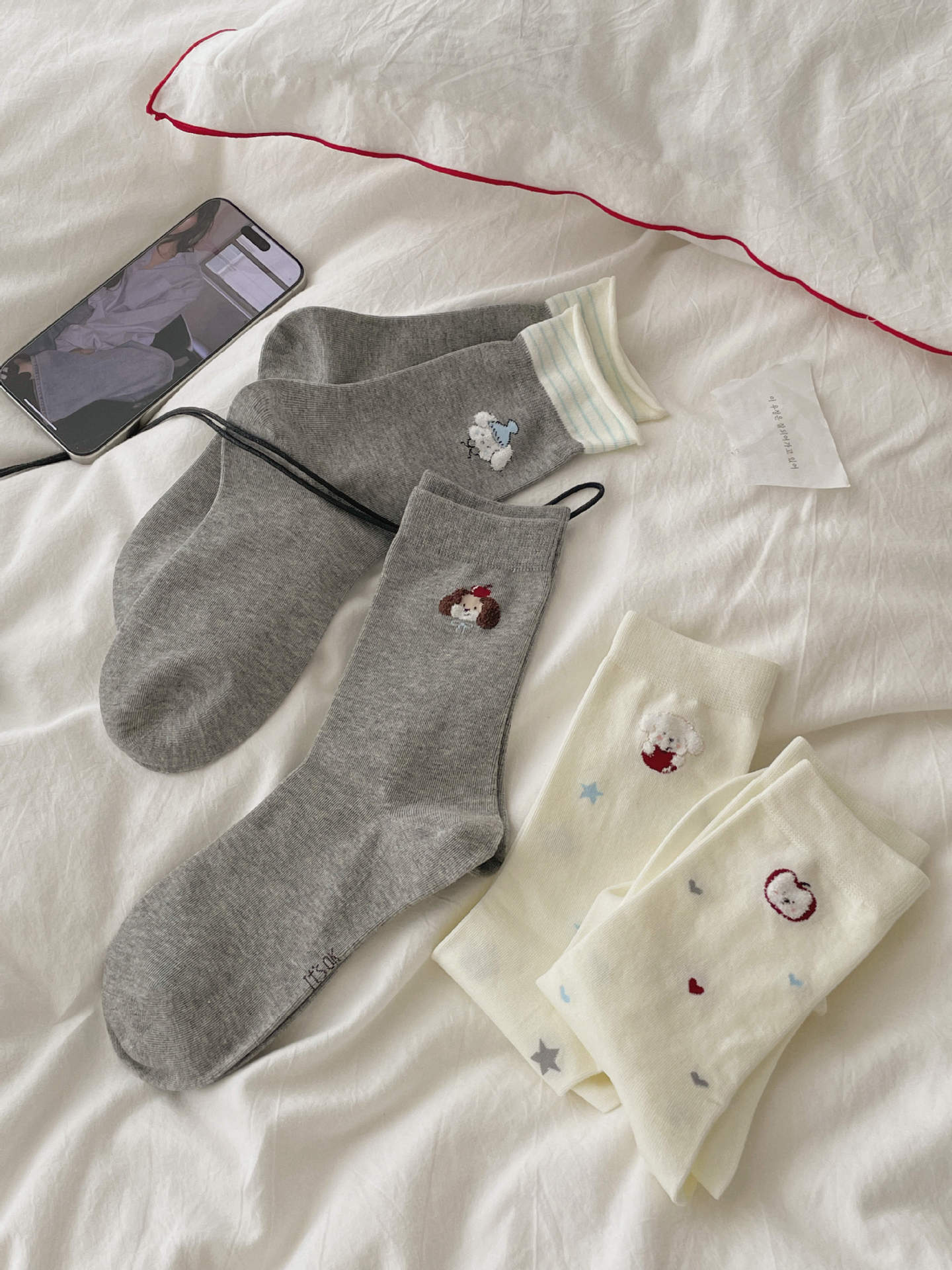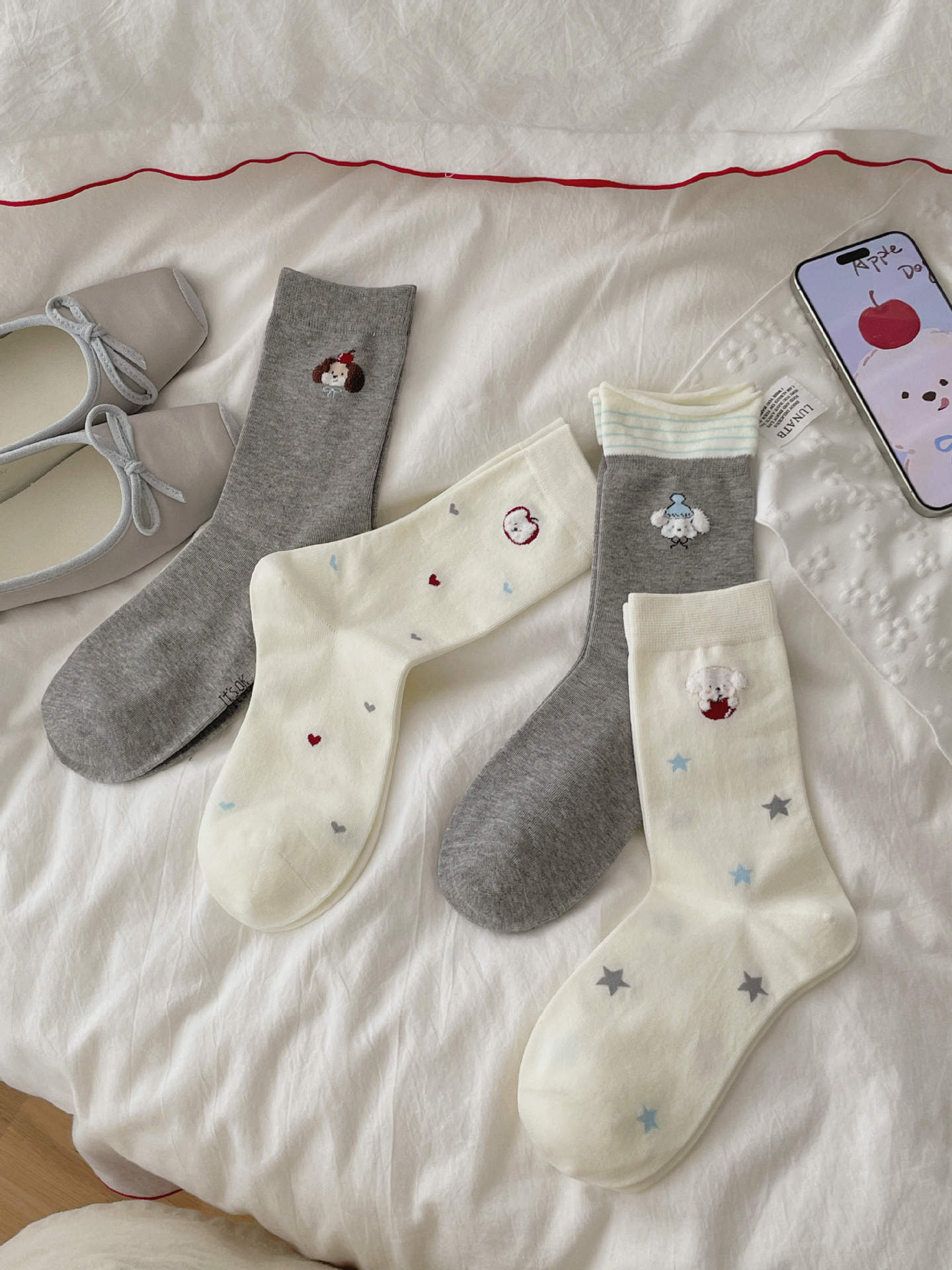 Calcetines de Mujer Otoño e Invierno Nuevo Estilo Calcetines de Media Caña ins Estilo Coreano de Moda Lindo Estilo Japonés Versátil Cachorro de Dibujos Animados Algodón Puro Calcetines Largos