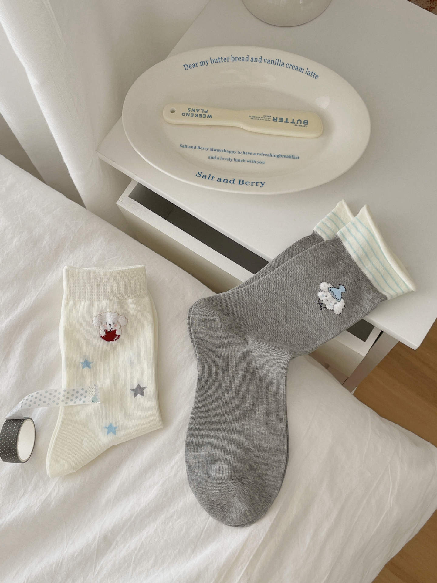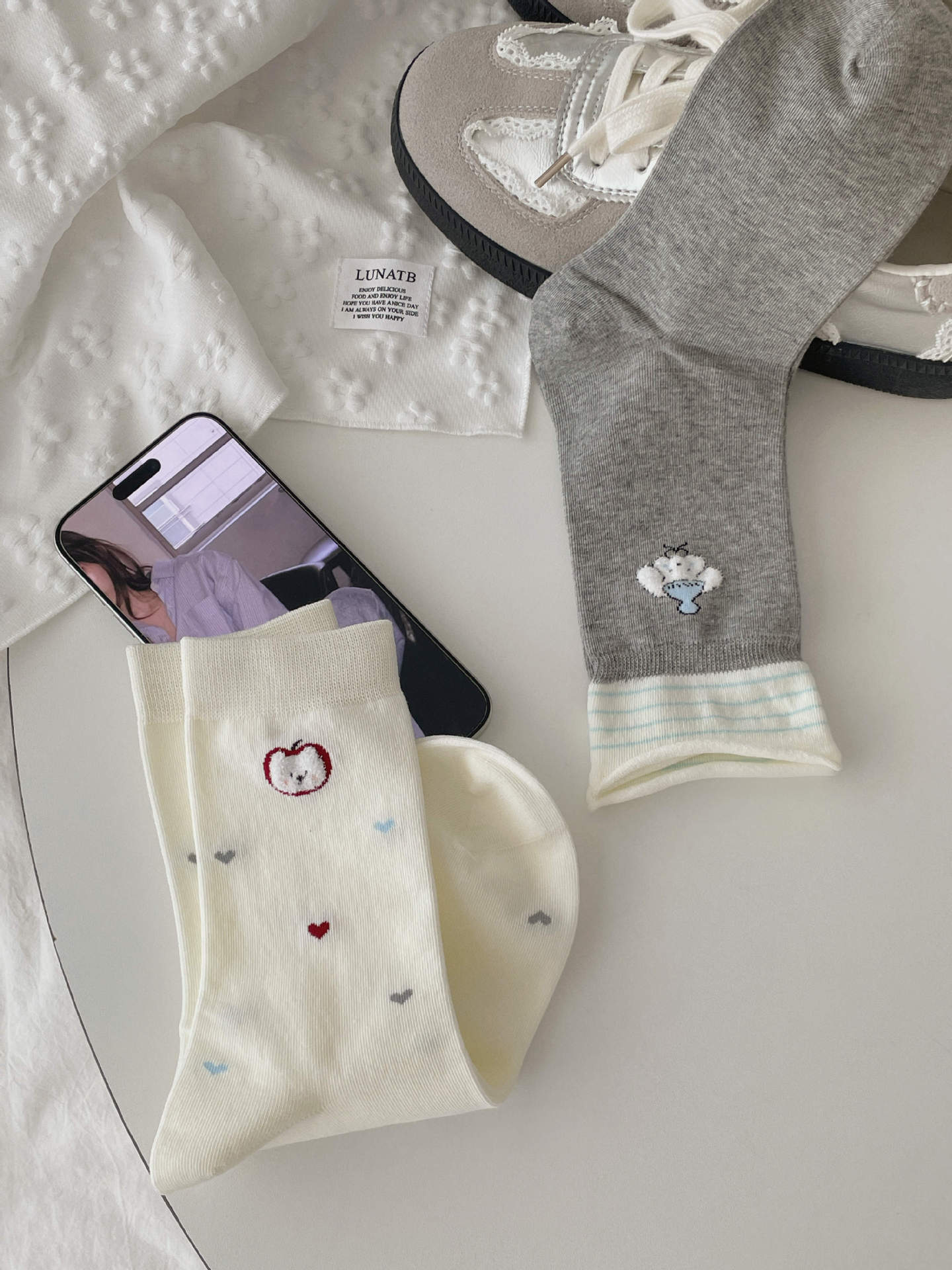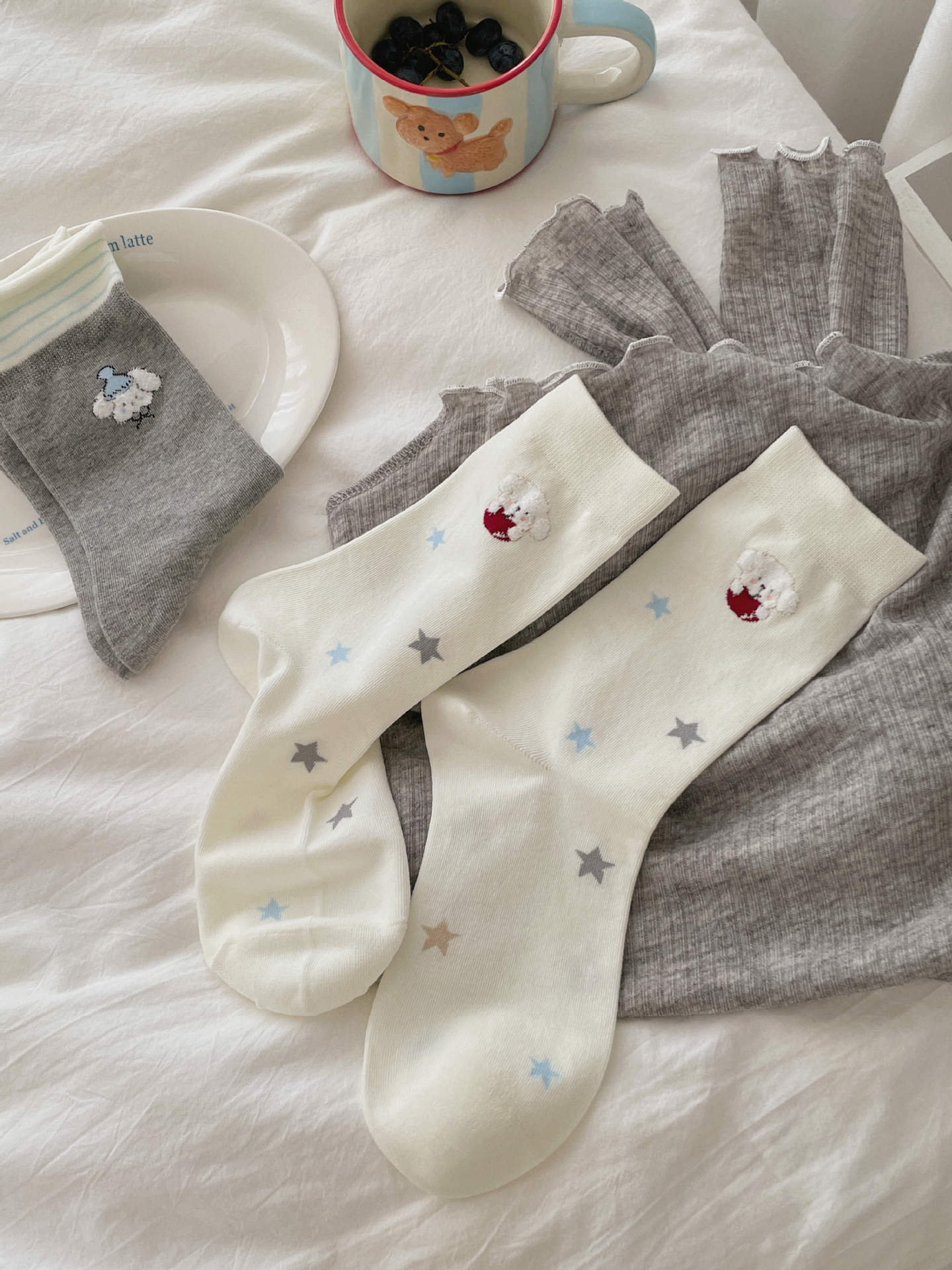 Calcetines de Mujer Otoño e Invierno Nuevo Estilo Calcetines de Media Caña ins Estilo Coreano de Moda Lindo Estilo Japonés Versátil Cachorro de Dibujos Animados Algodón Puro Calcetines Largos