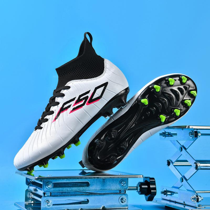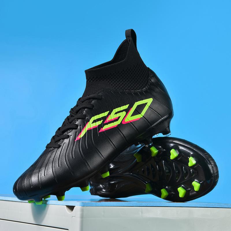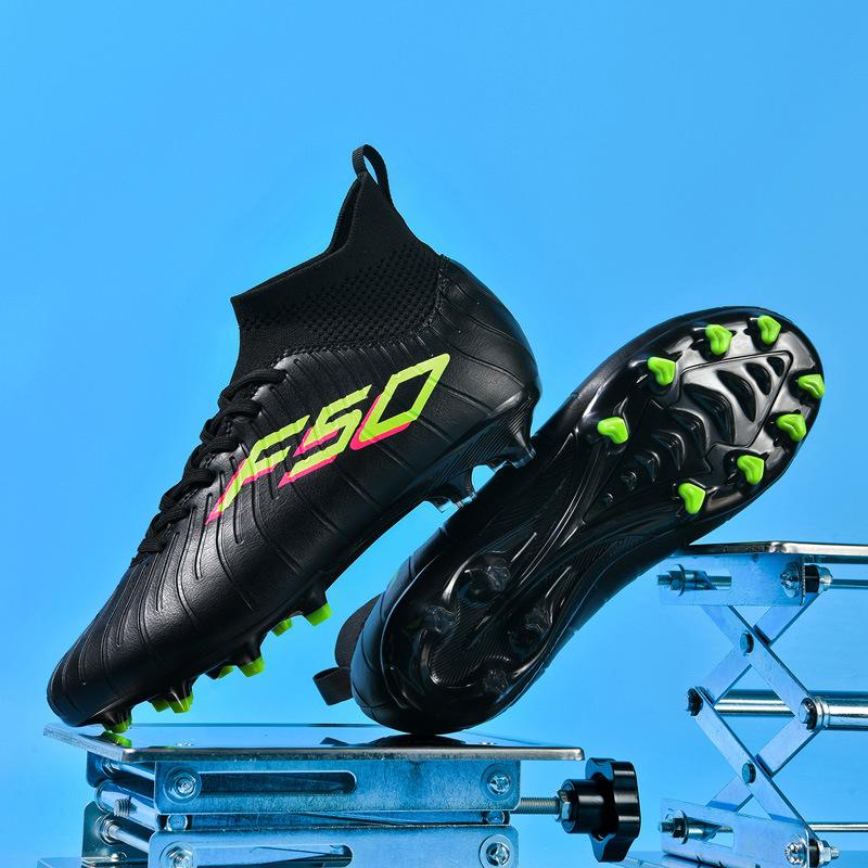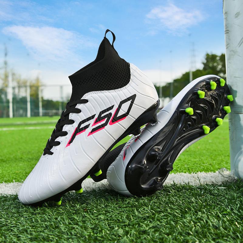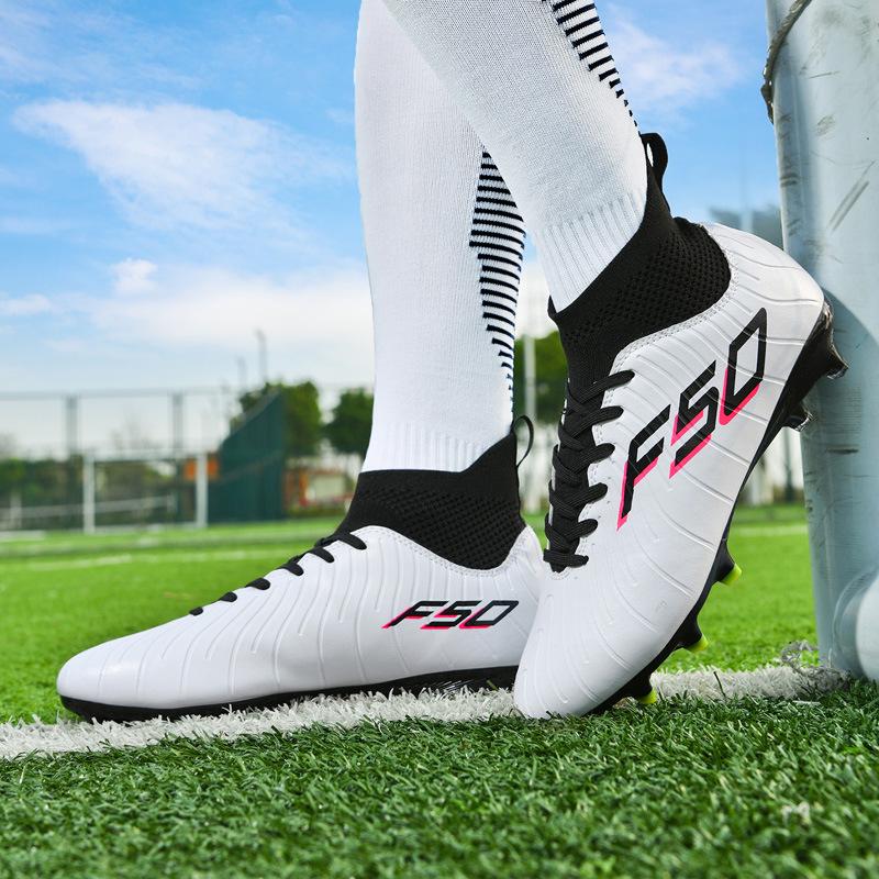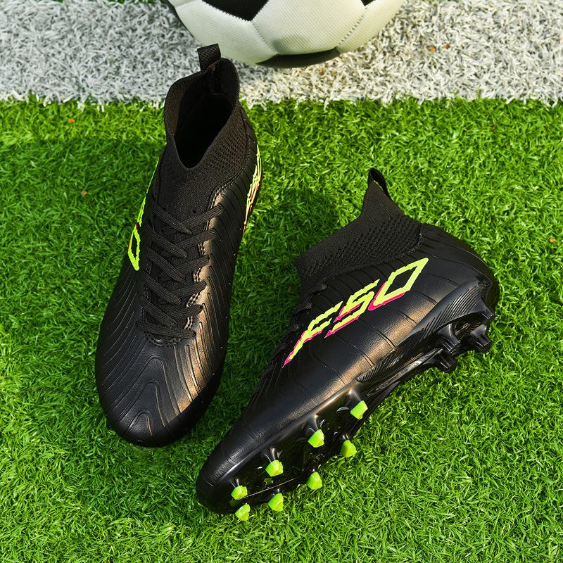 Zapatos de fútbol de caña alta transfronterizos AG tacos largos césped artificial cuero pie hombres y mujeres jóvenes estudiantes zapatos de entrenamiento para adultos al por mayor