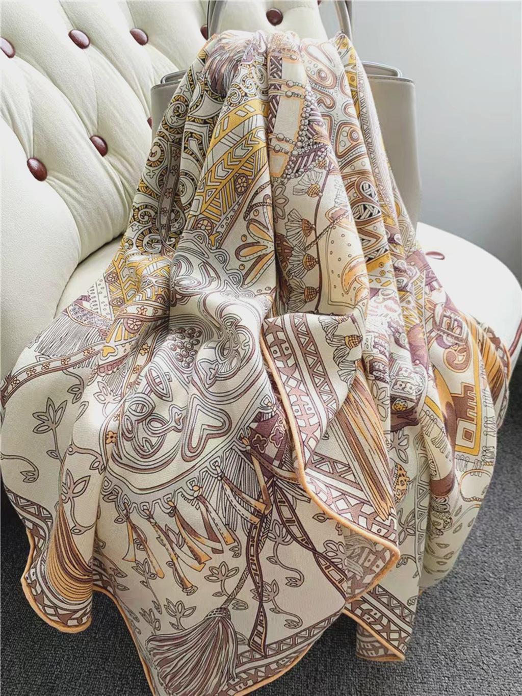 1# Animal Jungle Double-Sided Different Color Silk Wool Large Square Scarf (Simple Packaging) 133 Large Square...