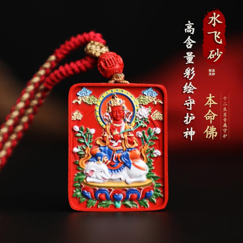 Collar Colgante Buda Natal Thangka Pintado con Arena Voladora de Agua de Cinabrio al por Mayor Dios Guardián Hombres y Mujeres Año Animal 2025