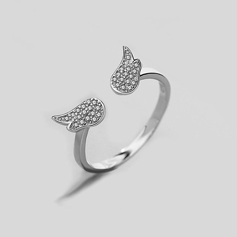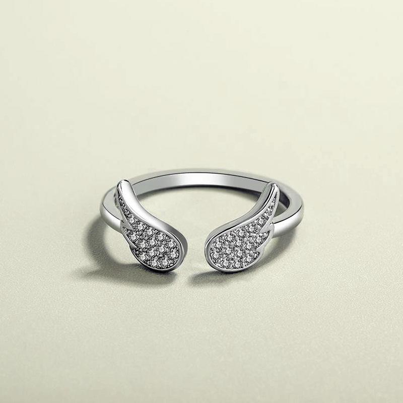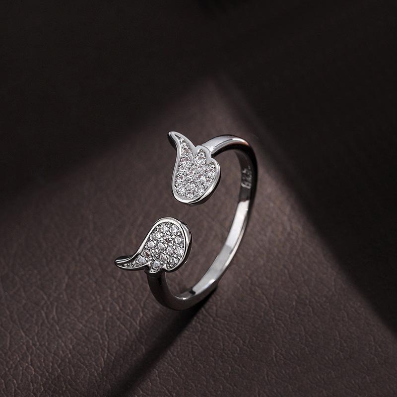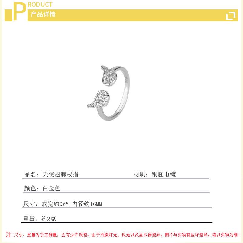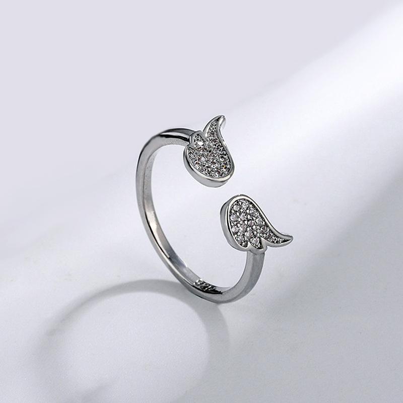 Anillo de alas de ángel estilo coreano estilo cool temperamento a la moda alas de circonita incrustadas anillo abierto suministro de comercio exterior