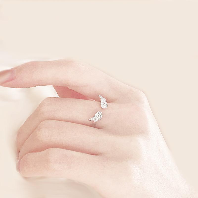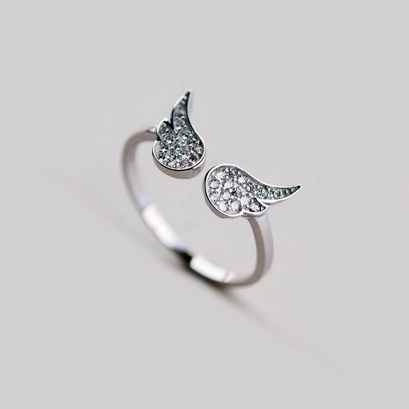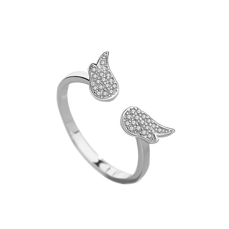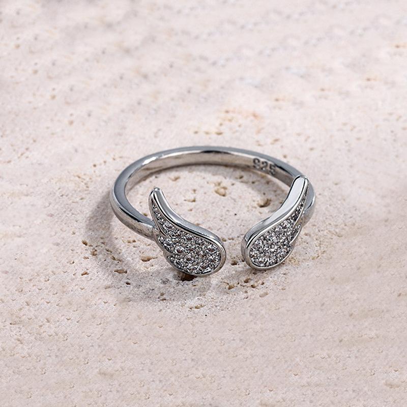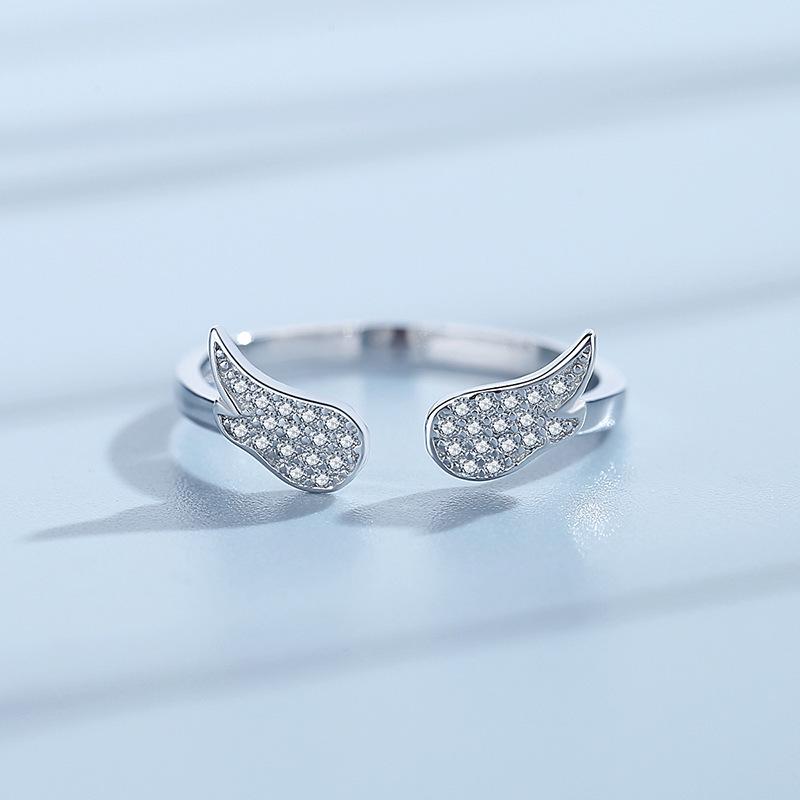 Anillo de alas de ángel estilo coreano estilo cool temperamento a la moda alas de circonita incrustadas anillo abierto suministro de comercio exterior