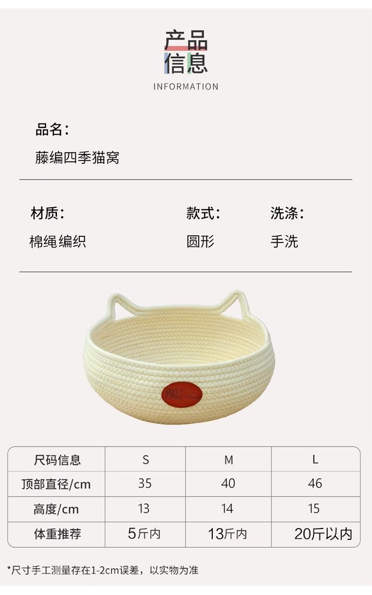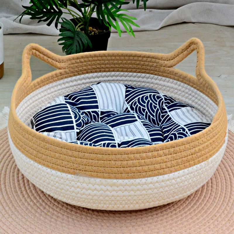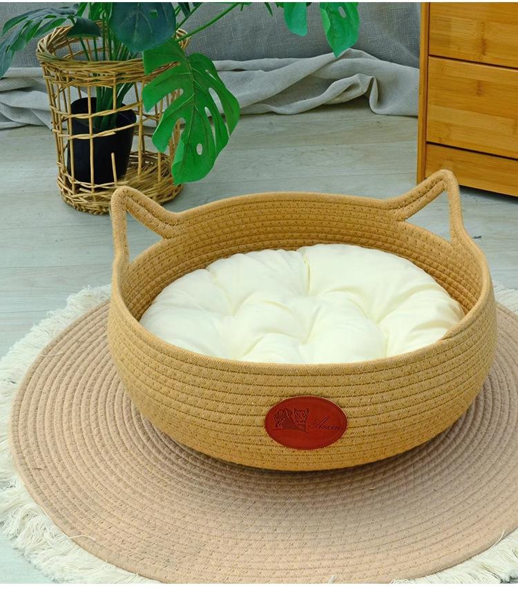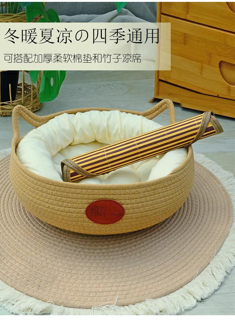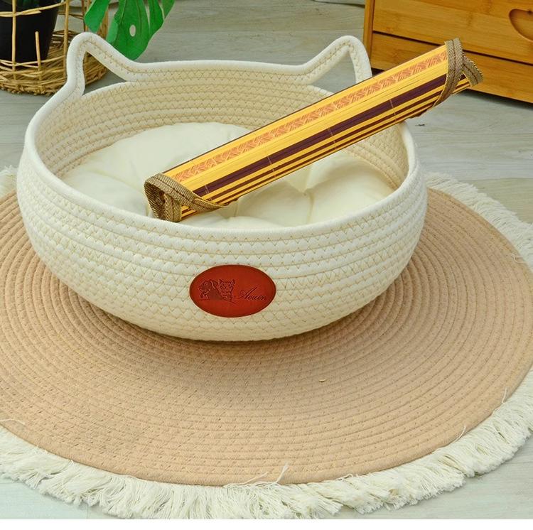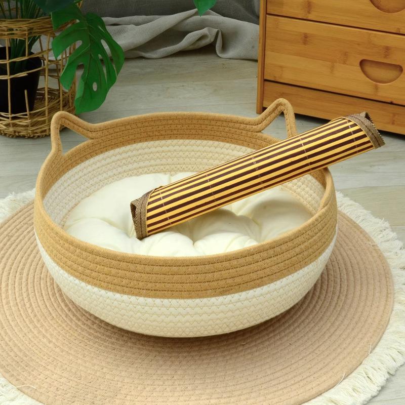 Nido de Rattan para Gatos para Todas las Estaciones, Suministros de Verano para Gatos, Colchoneta para Dormir, Perrera, Cama de Verano para Mascotas, Tejido para Rascar Gatos