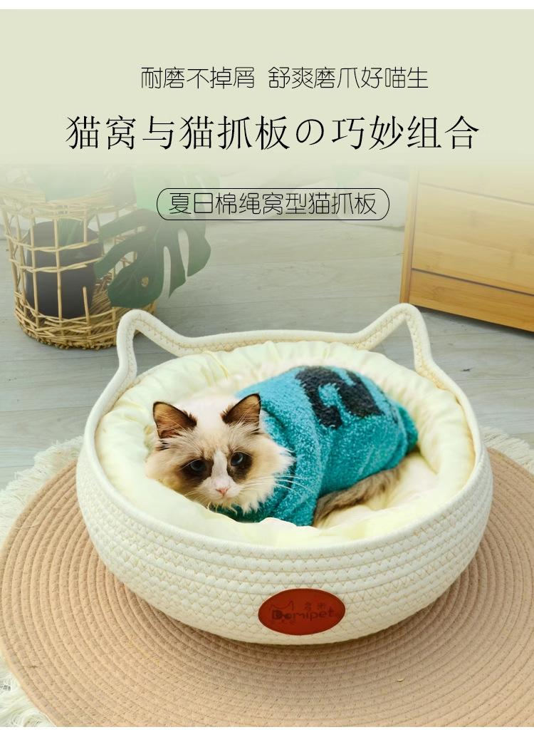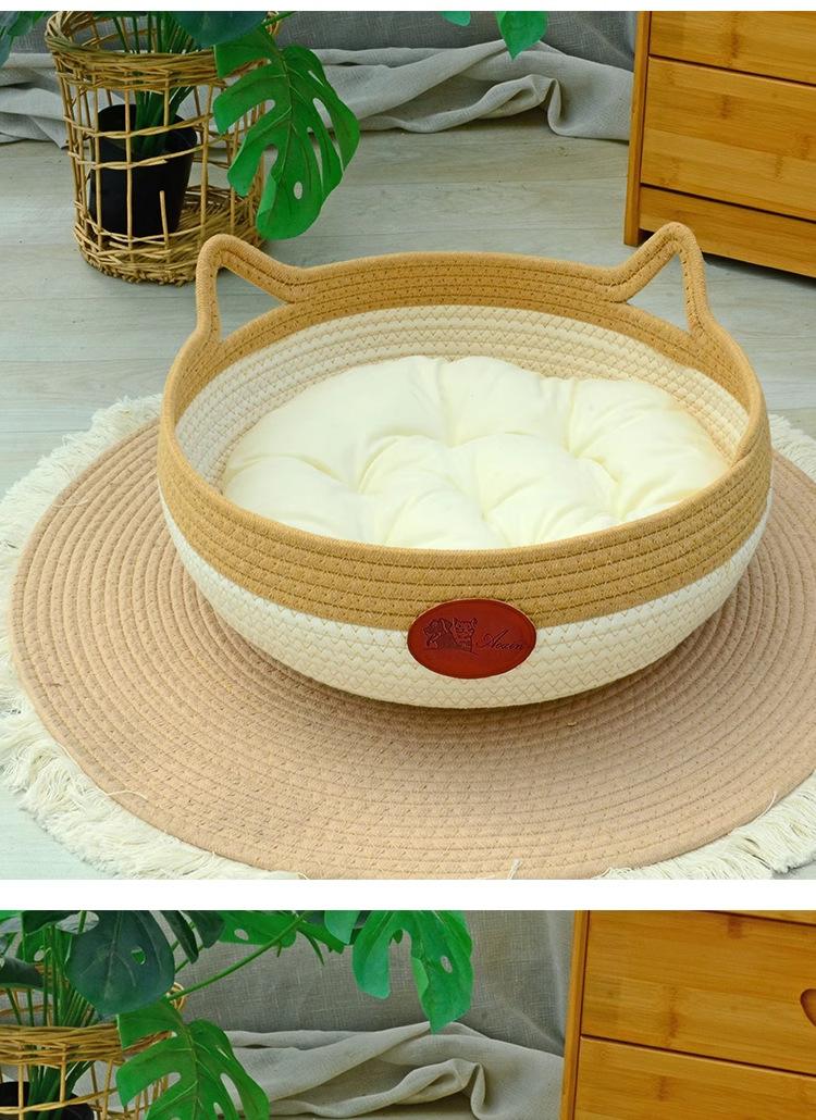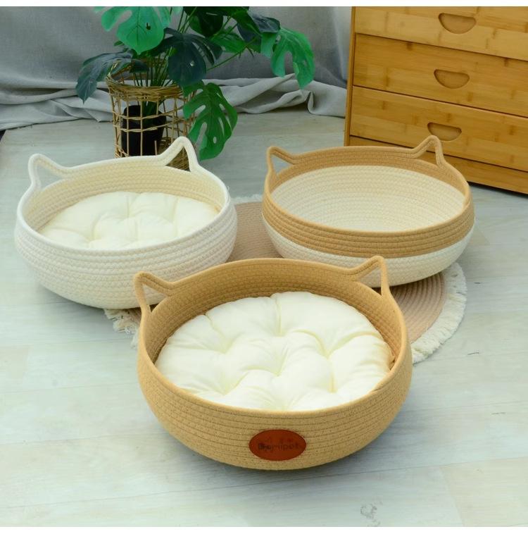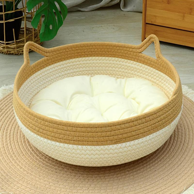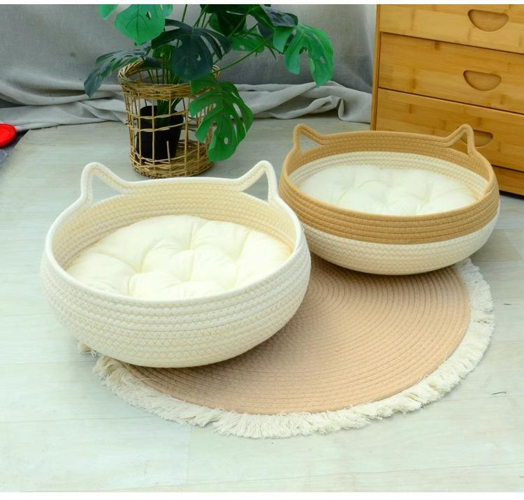 Nido de Rattan para Gatos para Todas las Estaciones, Suministros de Verano para Gatos, Colchoneta para Dormir, Perrera, Cama de Verano para Mascotas, Tejido para Rascar Gatos