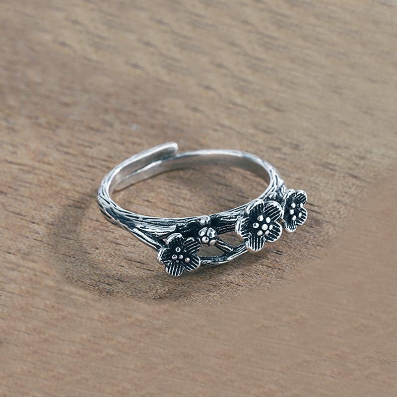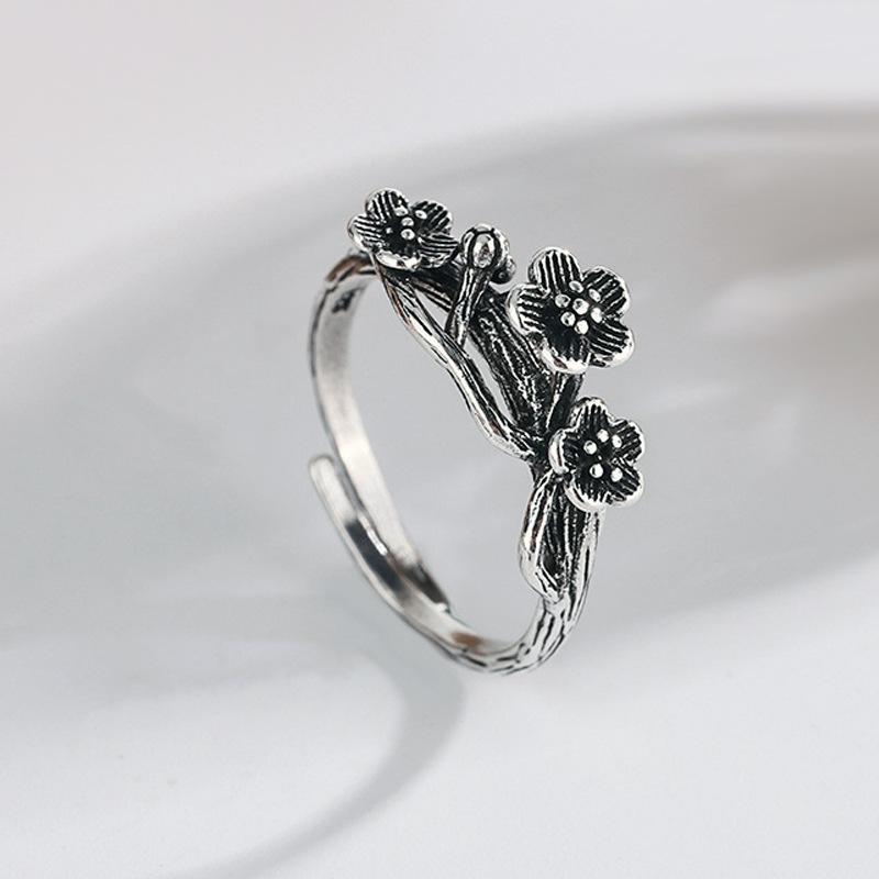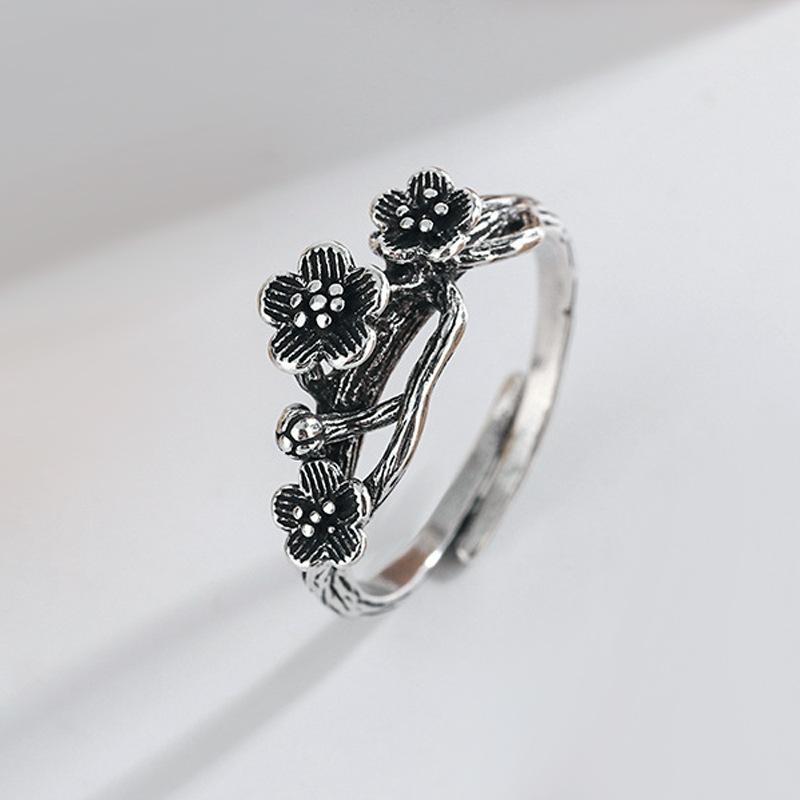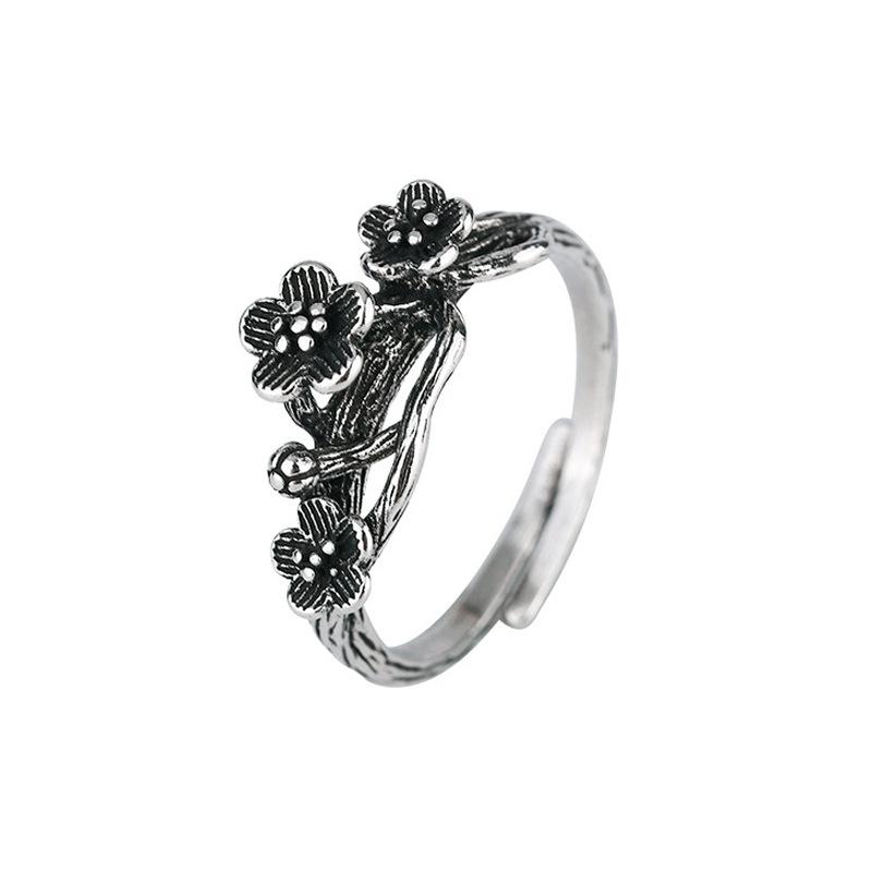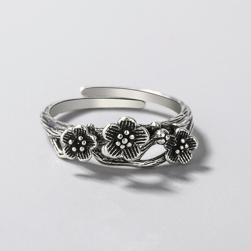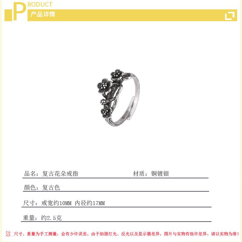 Anillo de flor vintage Han Dong puerta plateado personalidad diseño estilo frío flor anillo abierto dedo índice al por mayor