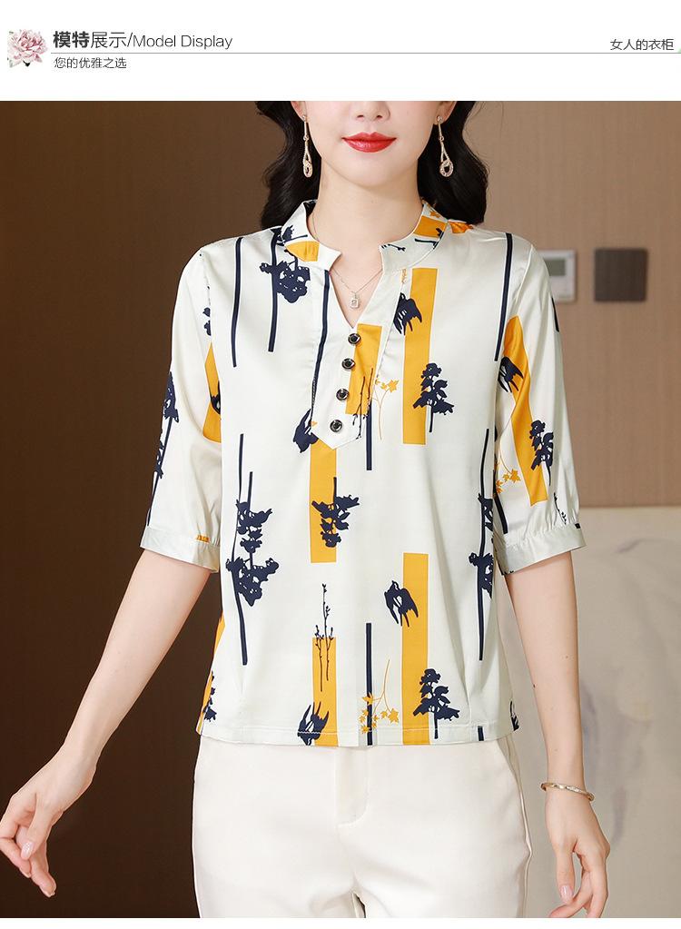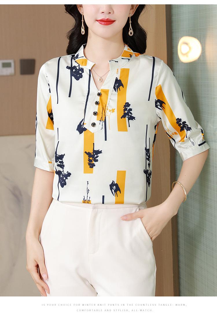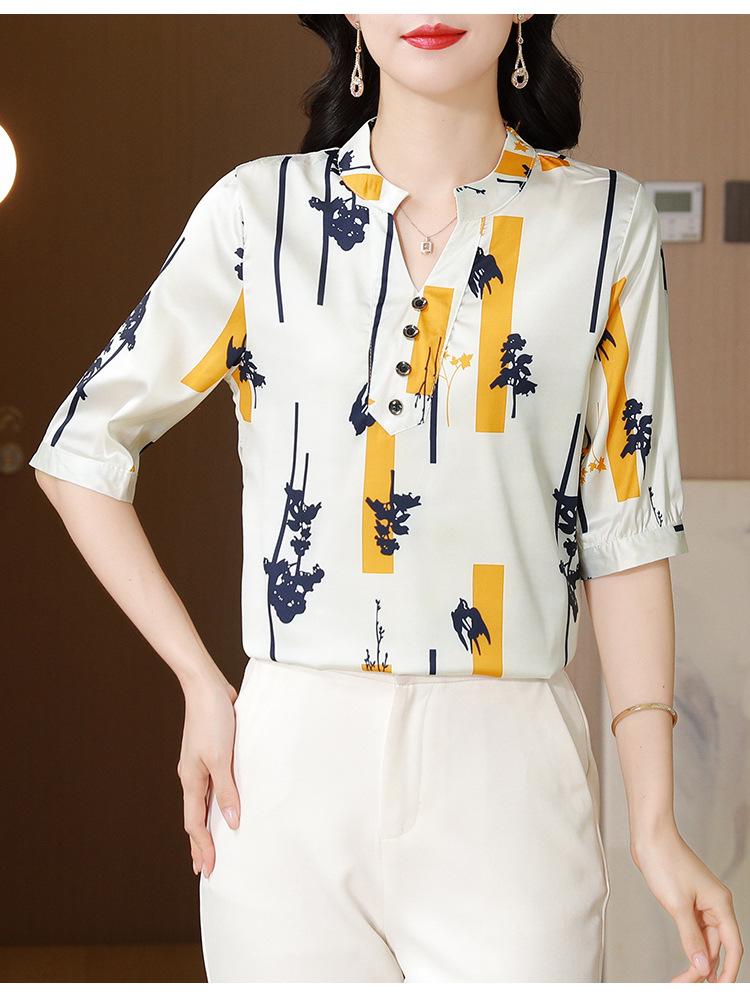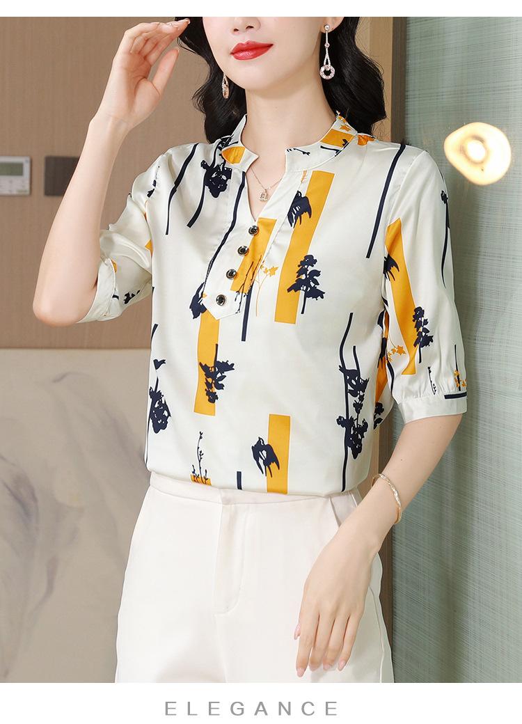 Alta calidad Cómodo Transpirable Reductor de edad Verano Nuevo Top de seda Seda de morera Camiseta corta Camisa de seda de peso pesado