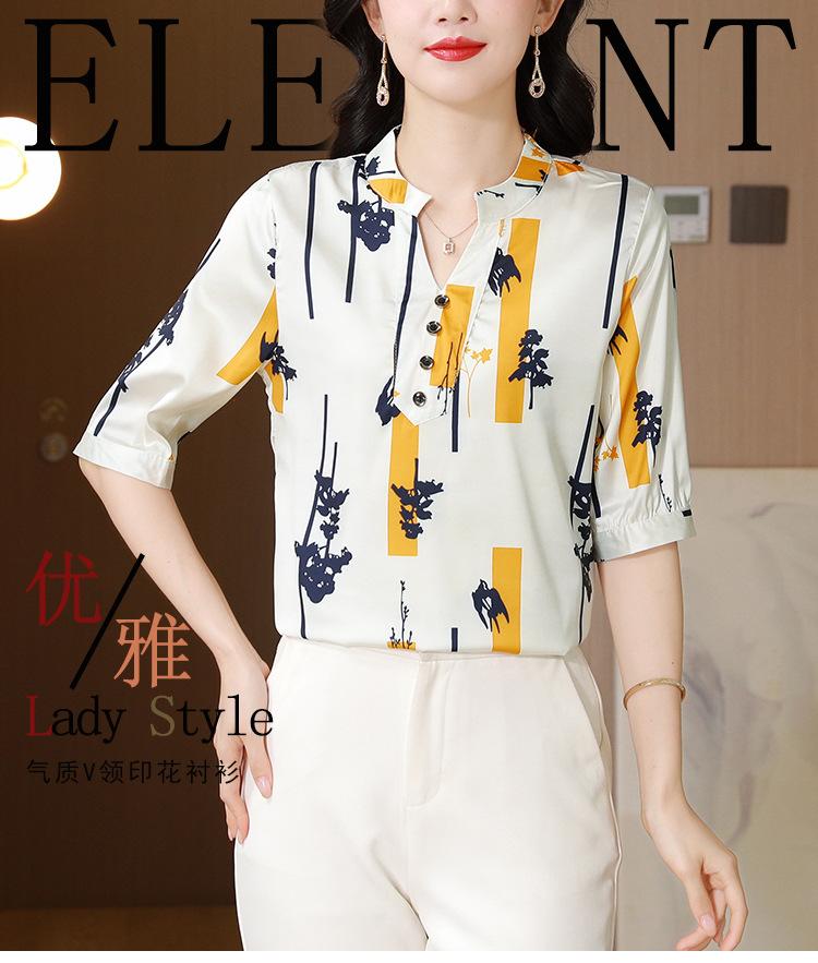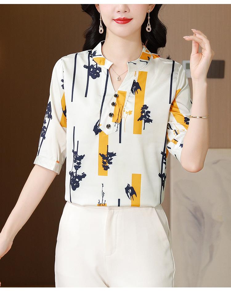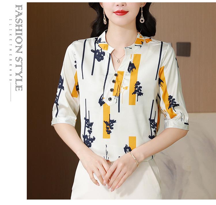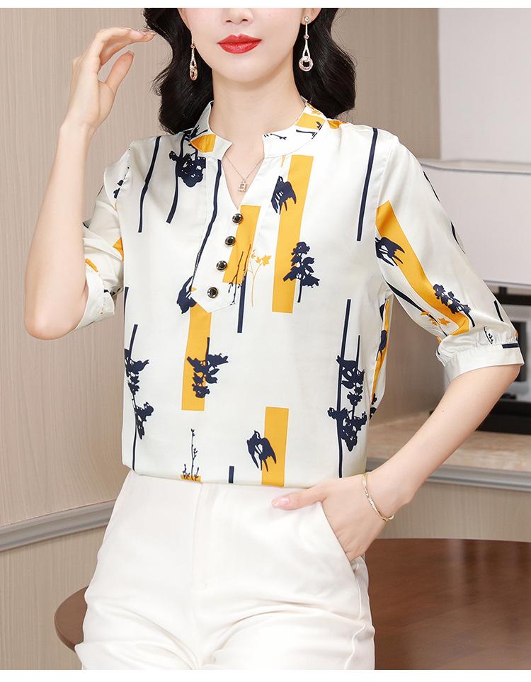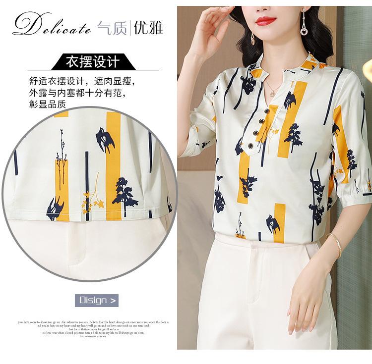 Alta calidad Cómodo Transpirable Reductor de edad Verano Nuevo Top de seda Seda de morera Camiseta corta Camisa de seda de peso pesado