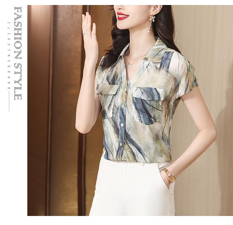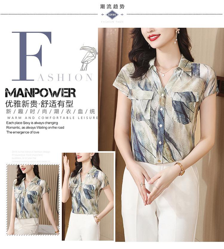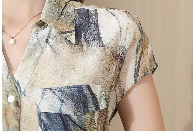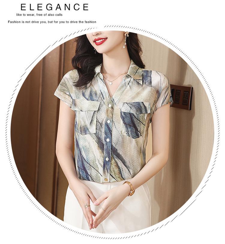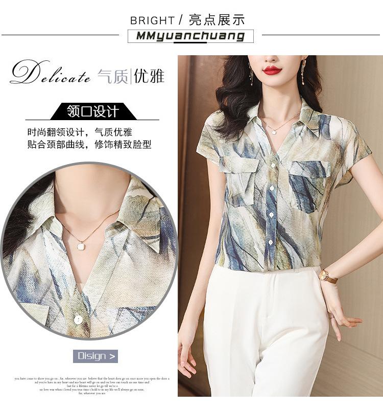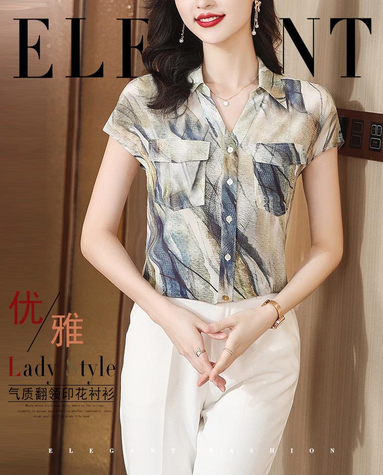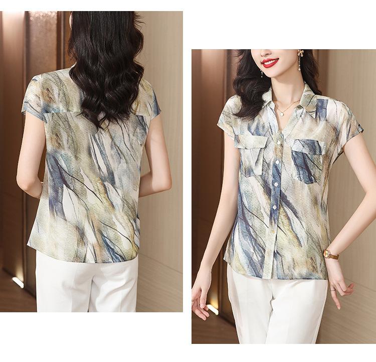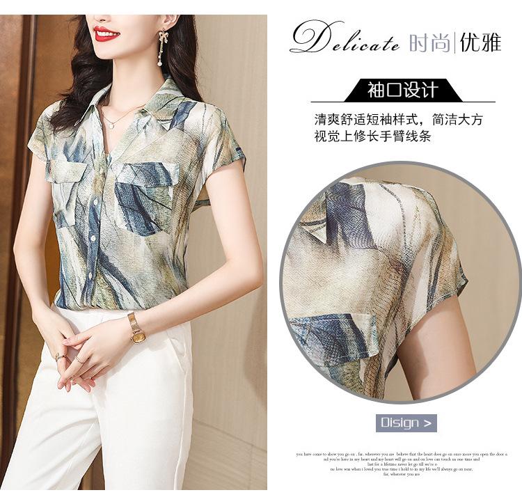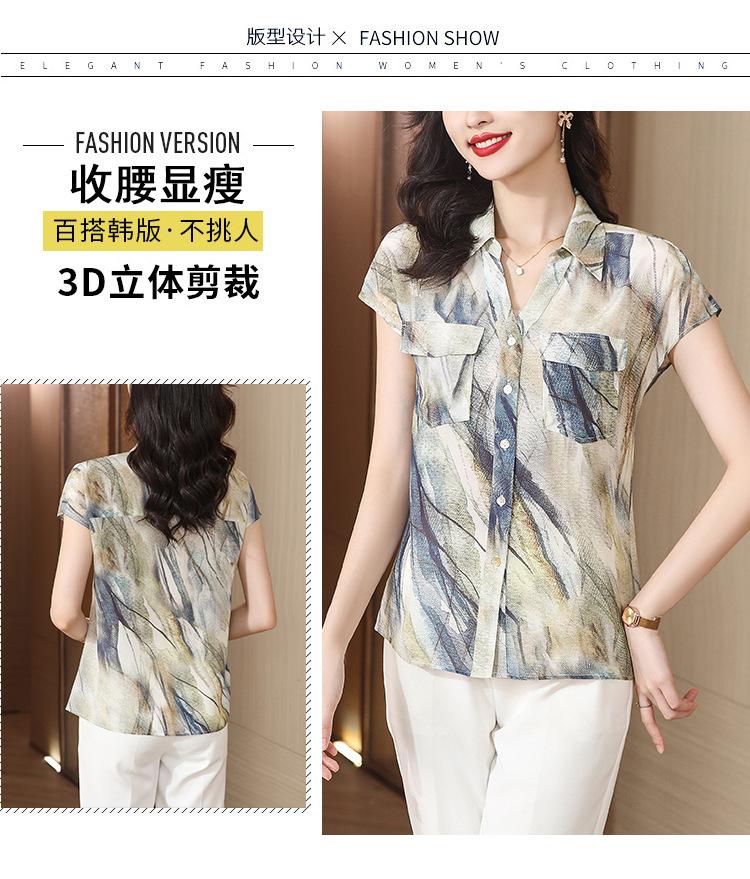 Camisa de seda para mujer de mediana edad cómoda y de alta calidad que reduce la edad, diseño suelto de verano con sentido de la moda, temperamento de alta gama, camisa de seda de morera