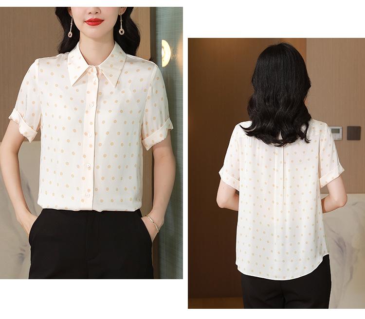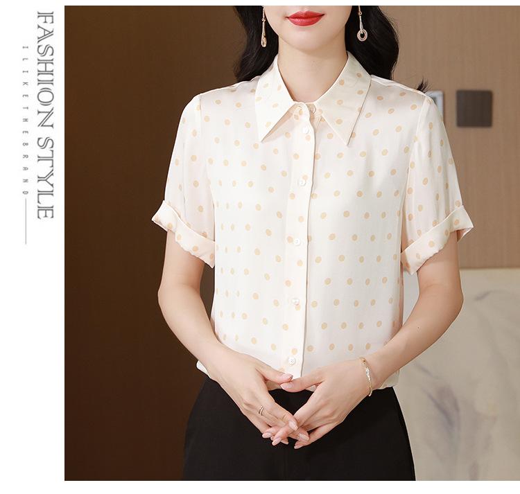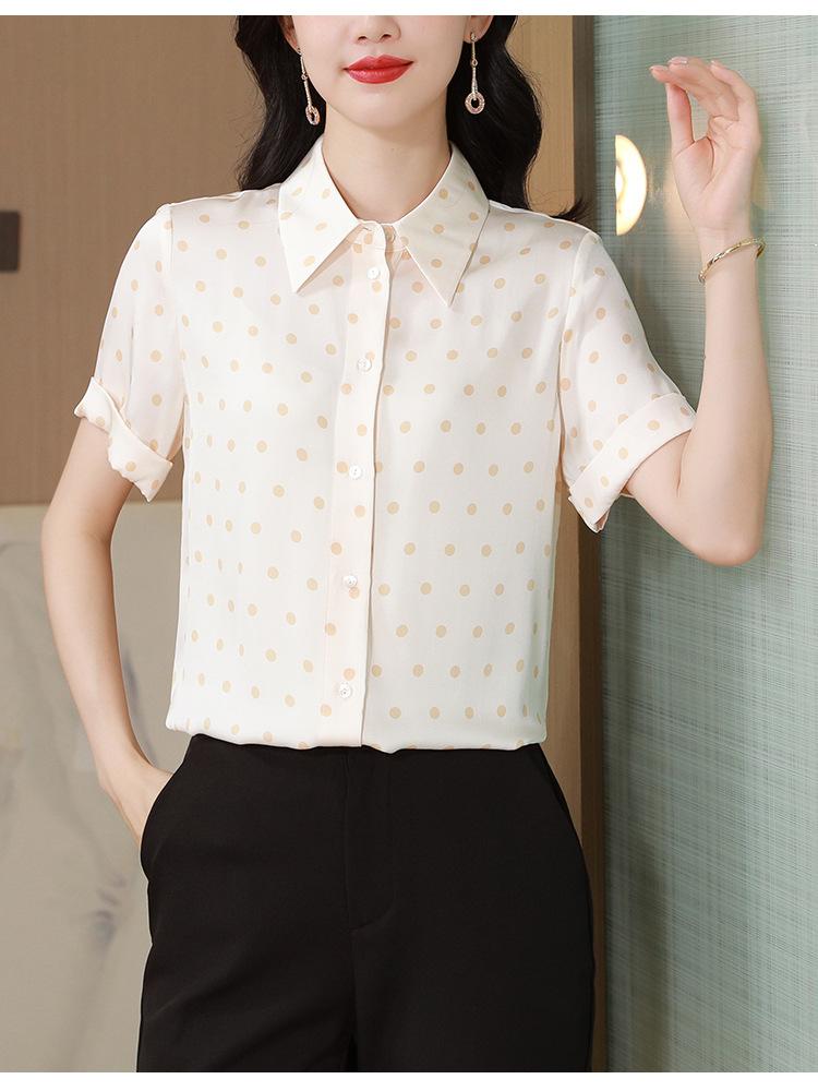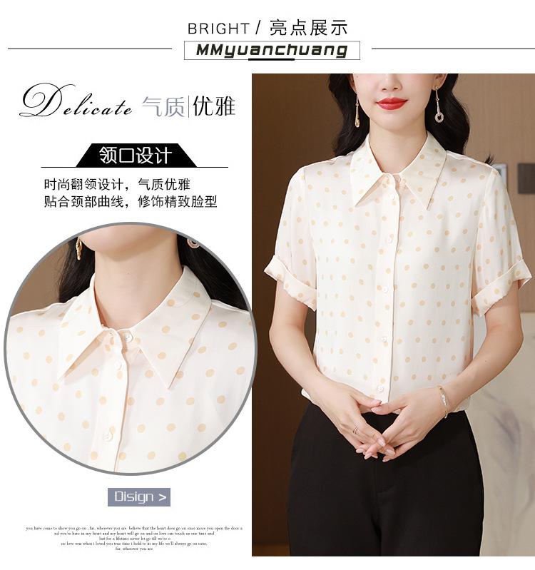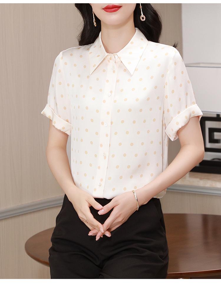 Camisa de seda de morera de seda real de 22 momme de alta calidad, transpirable, cómoda, que reduce la edad para mujeres de mediana edad, nueva de verano, sensación fresca de verano
