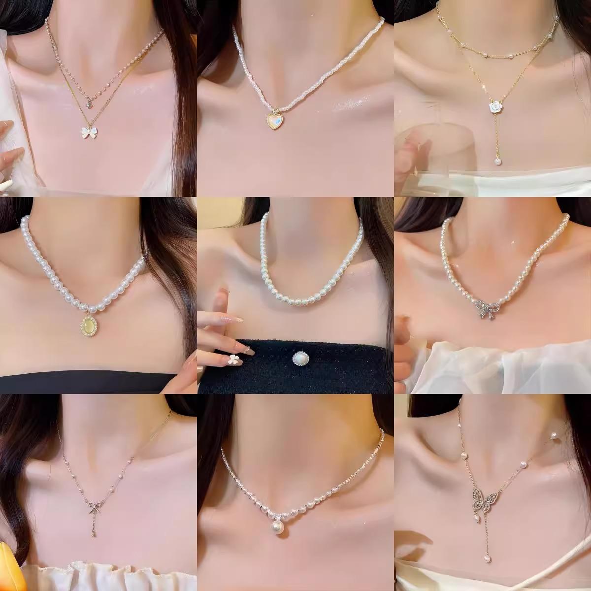 Collar de Perlas de Lujo Nicho Joyería para Mujer Cadena de Clavícula de Aguamarina de Alta Gama Distintiva Simple Accesorios de Venta Caliente de Moda