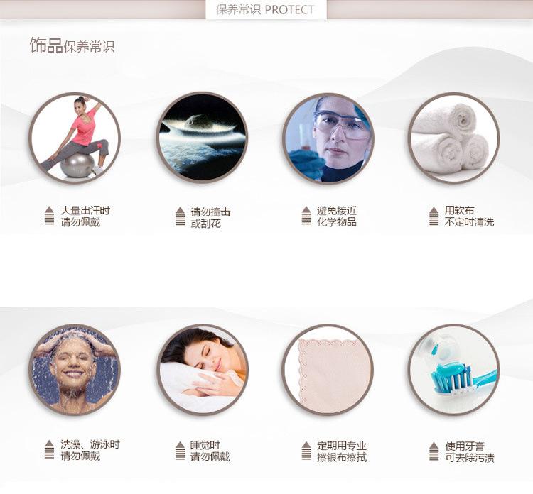 Evite el contacto directo de las joyas con agua, perfume, jabón, laca, bolas de naftalina, lavavajillas y otros productos con ingredientes químicos que puedan corroerlas. Después de usarlas, guárdelas en una bolsa o joyero. Se recomienda no exponerlas al aire durante mucho tiempo para evitar la oxidación.