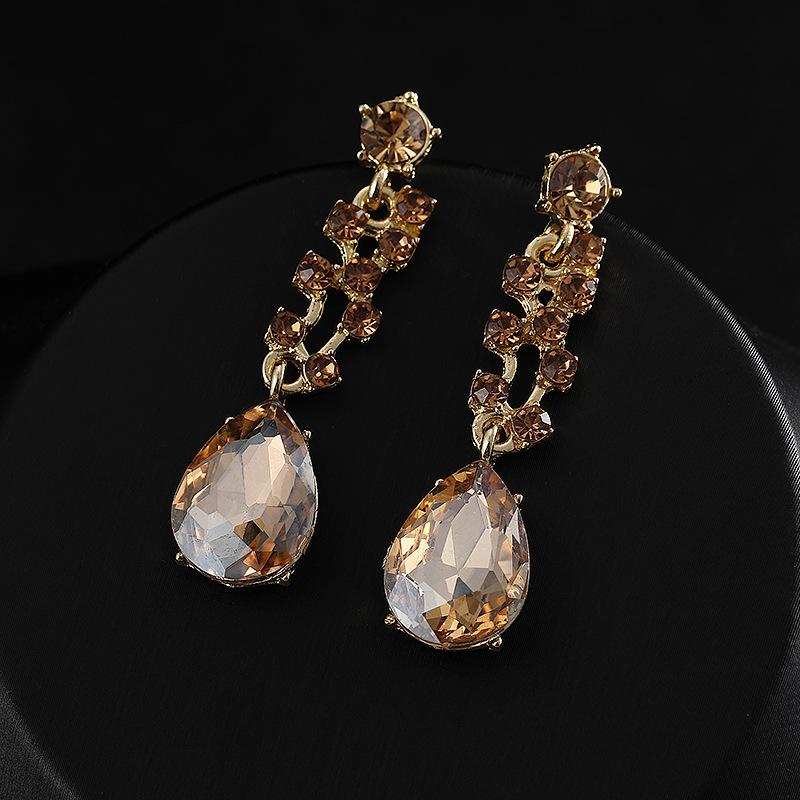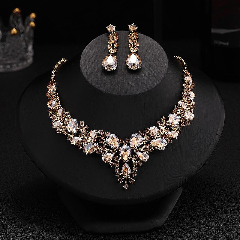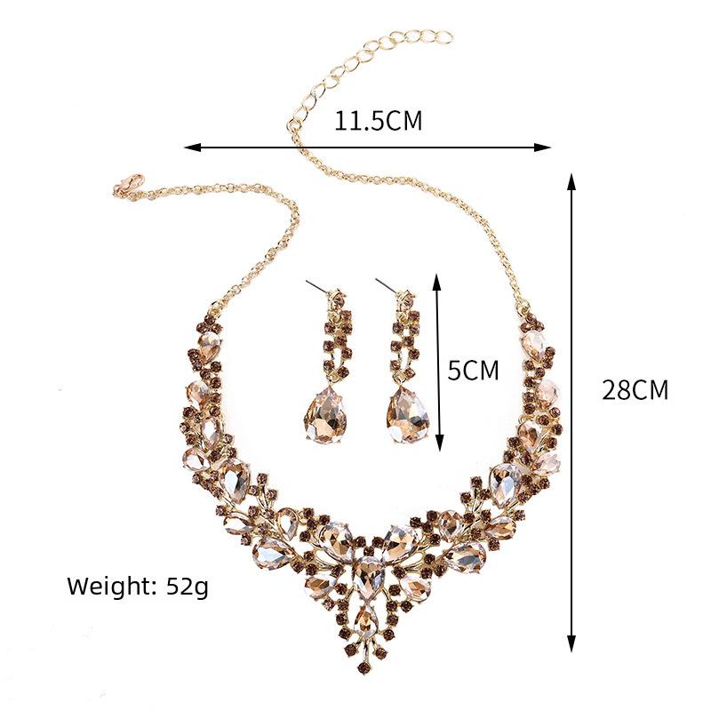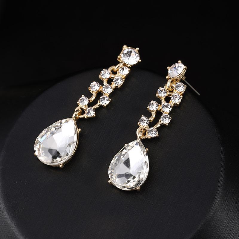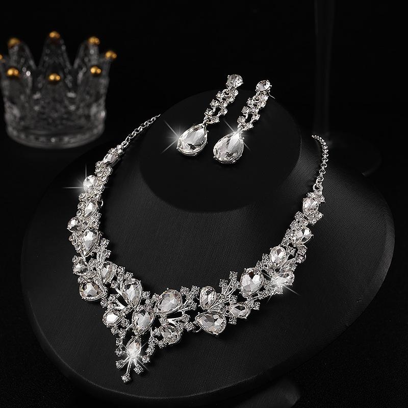 Diseño y Estilo: Con un diseño geométrico y cristales en forma de gota de agua, este conjunto añade un toque de glamour a cualquier vestido de novia o vestido de noche.