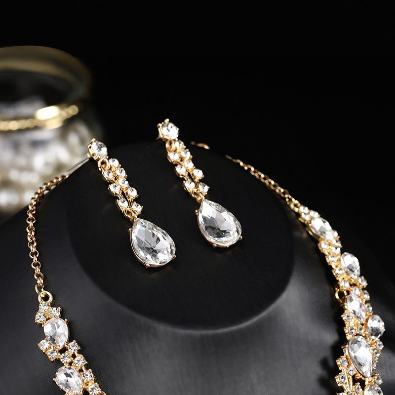 Collar y pendientes de novia con circonitas, joyería nupcial, traje de noche, accesorios para banquete de boda