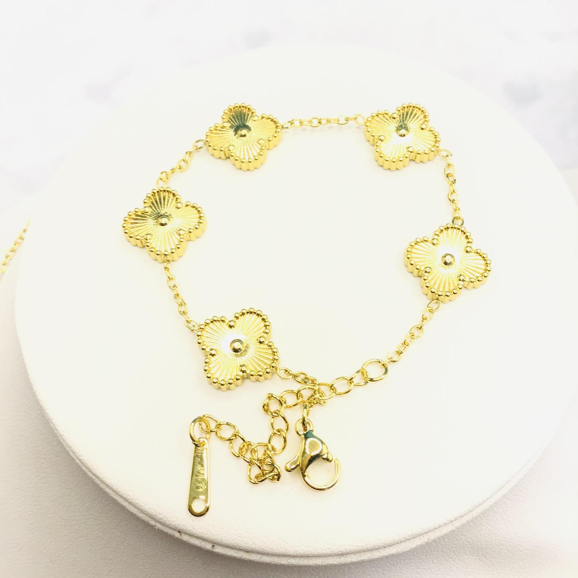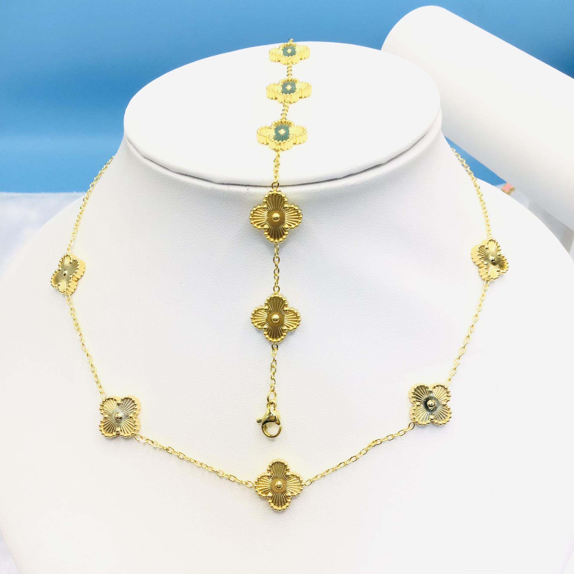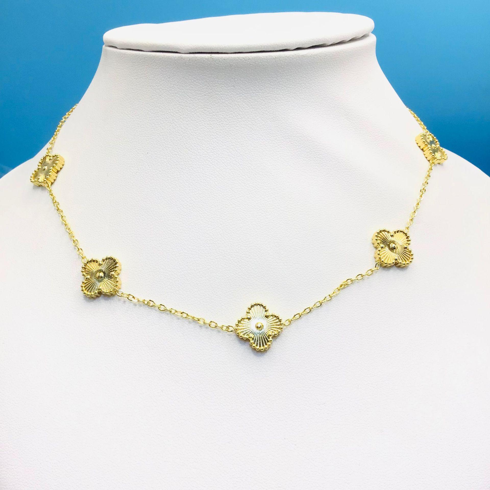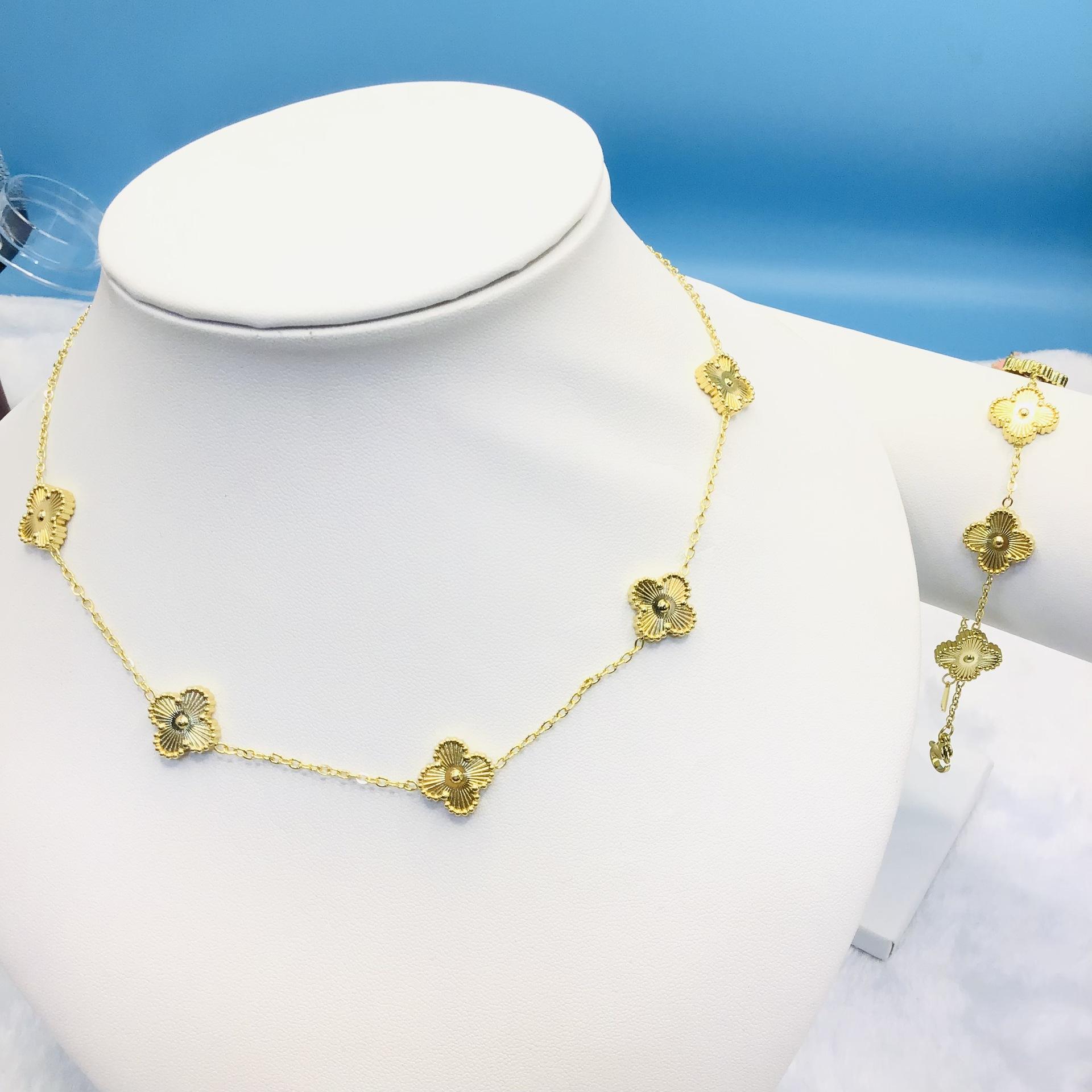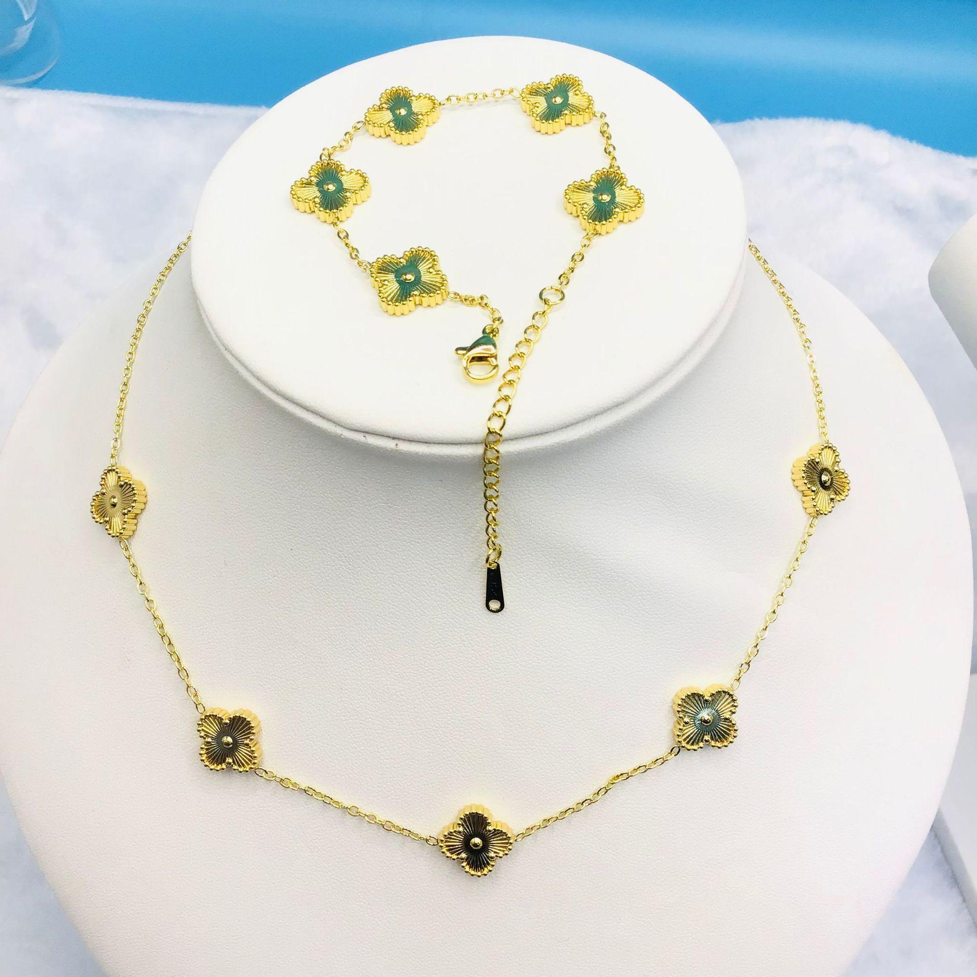 Pulsera collar de acero de titanio de doble cara flor trébol de cuatro hojas que no se desvanece moda lujo personalizado cadena clavícula joyería al por mayor