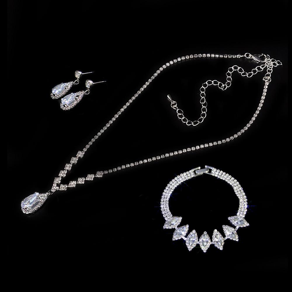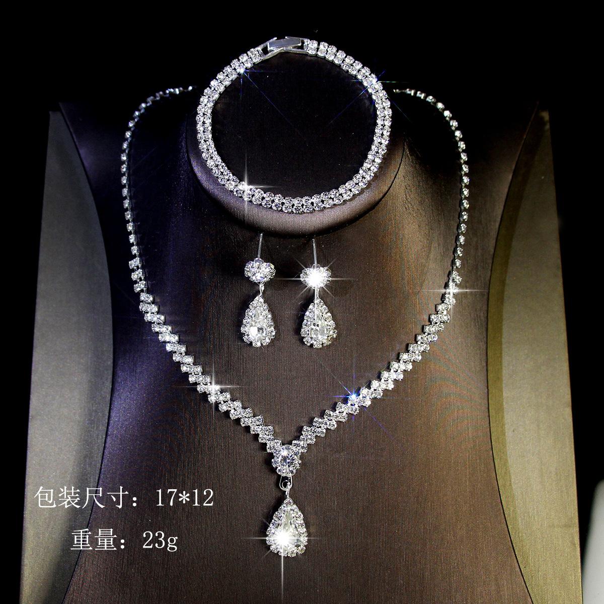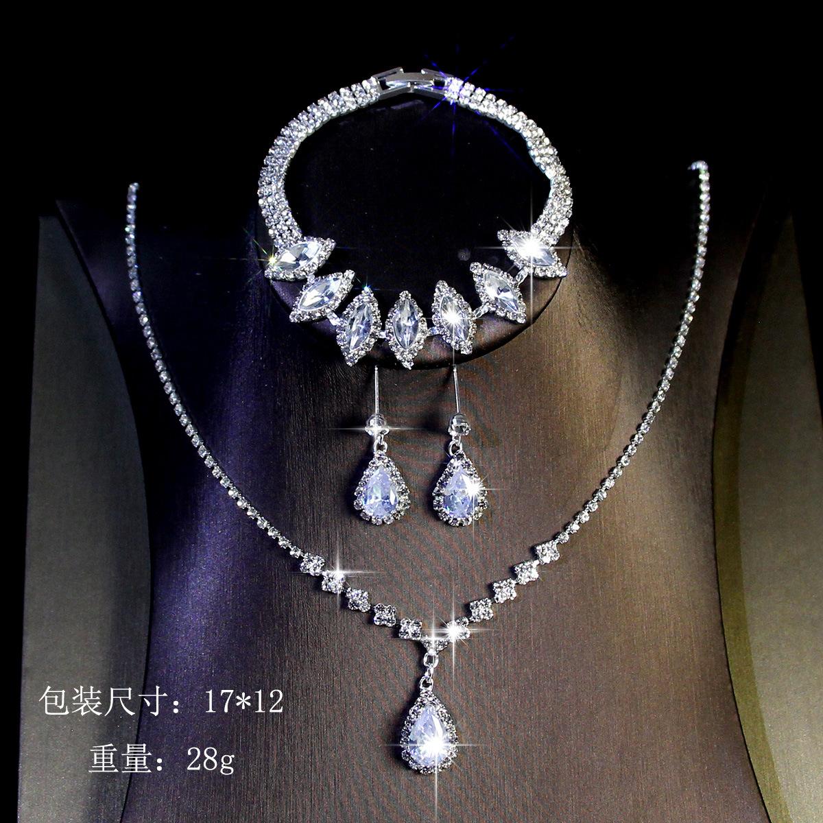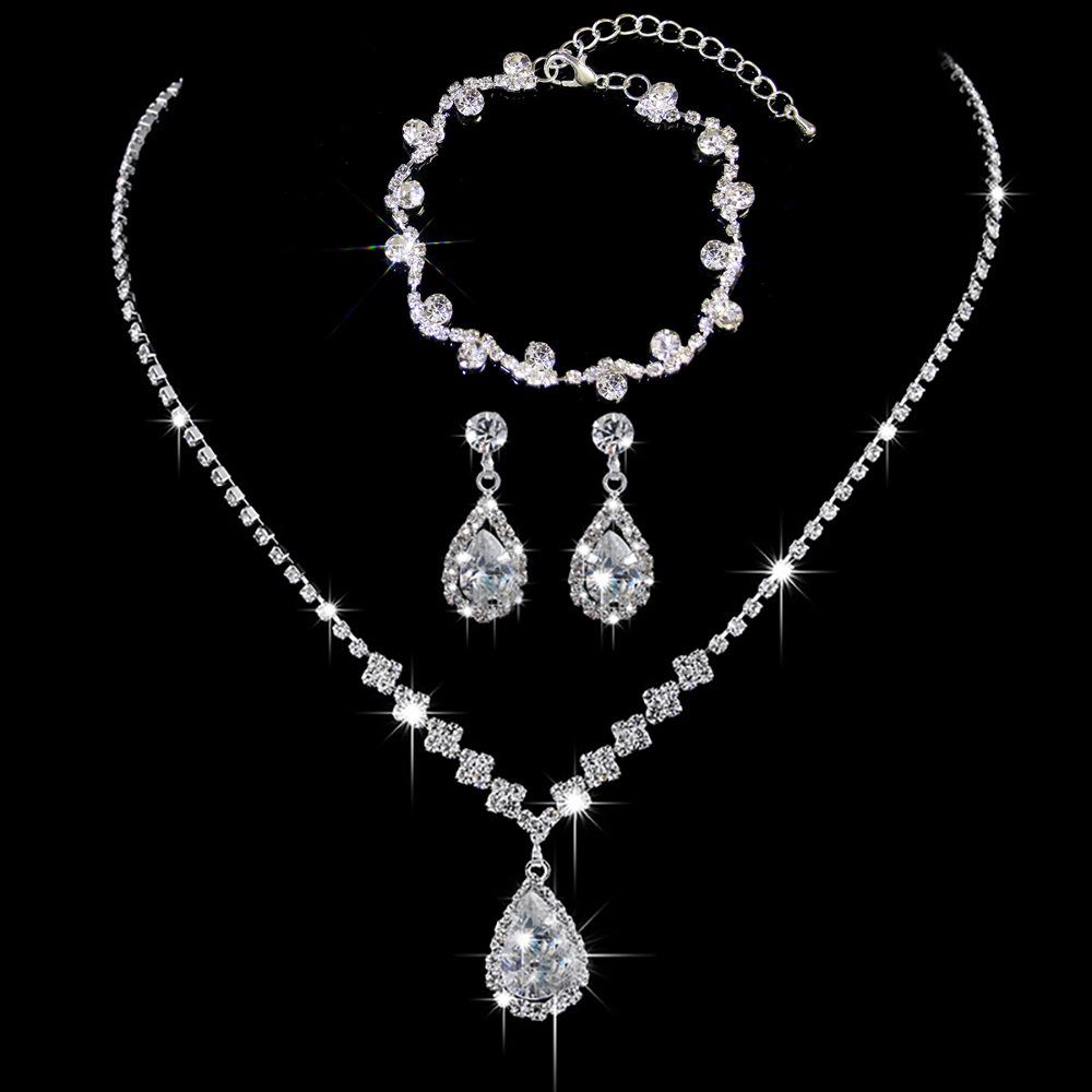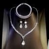 Joyería transfronteriza traje Lujo Fiesta de Boda Joyería para Mujer Collar de Circonita Diamante Completo Set de Tres Piezas de Joyería con Gota de Agua