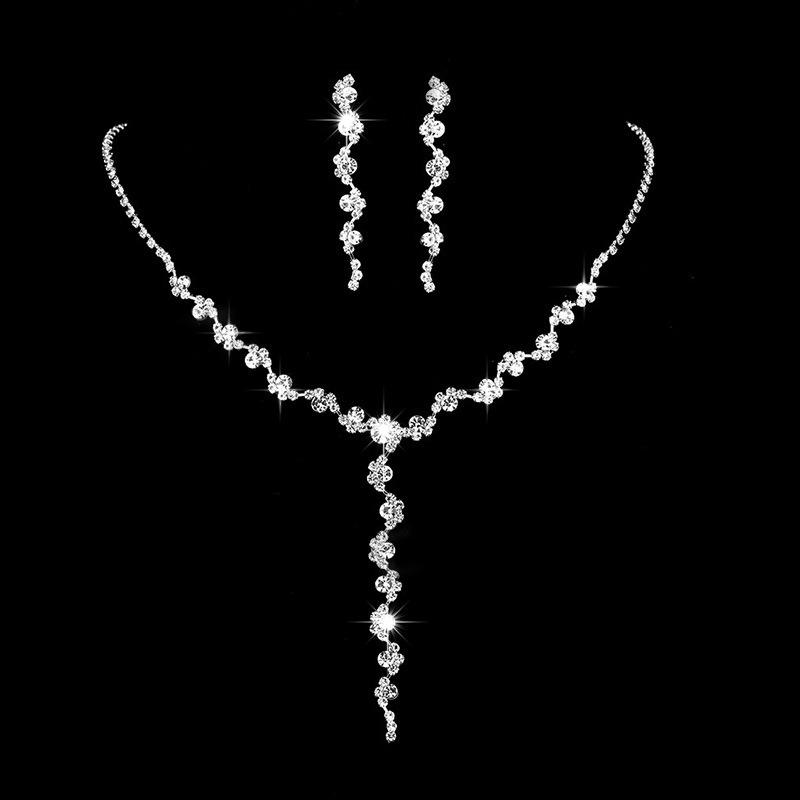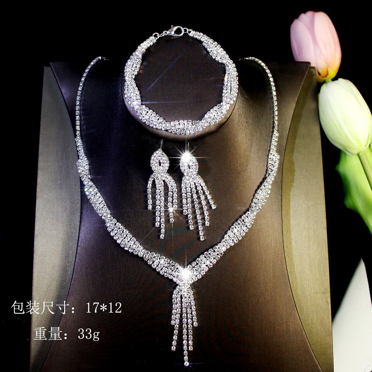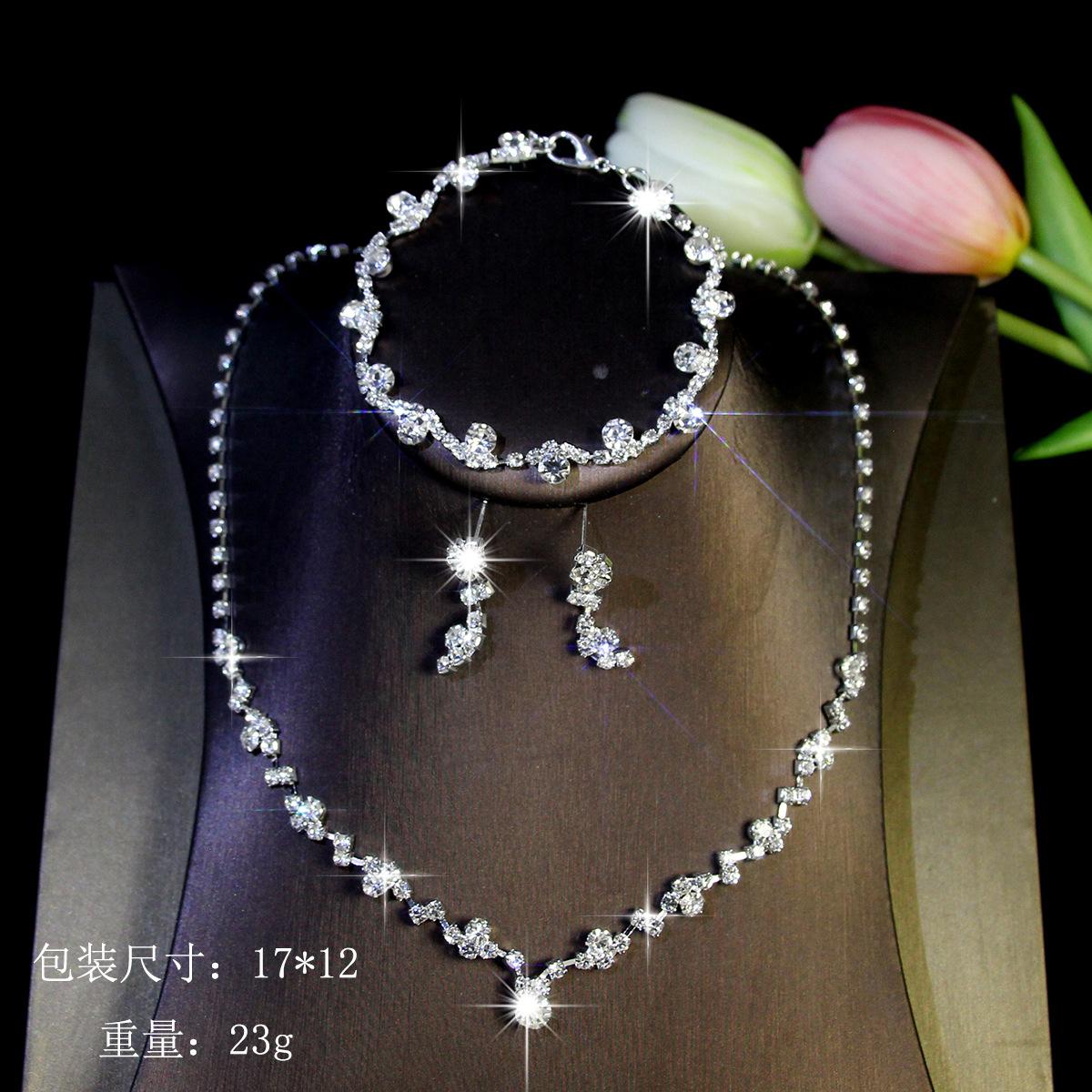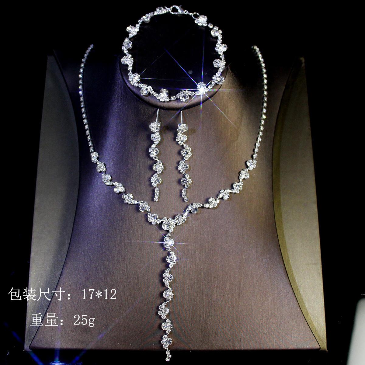 Joyería transfronteriza traje Lujo Fiesta de Boda Joyería para Mujer Collar de Circonita Diamante Completo Set de Tres Piezas de Joyería con Gota de Agua
