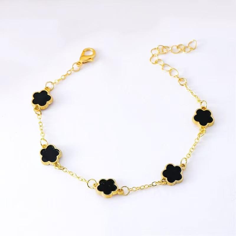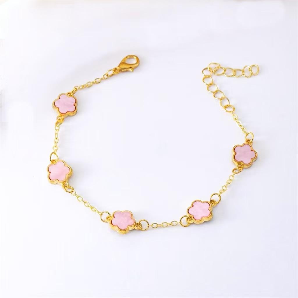 Pulsera de trébol de cinco hojas venta caliente transfronteriza flor afortunada de cinco pétalos moda europea y americana combinable pulsera de joyería de flor de cinco hojas