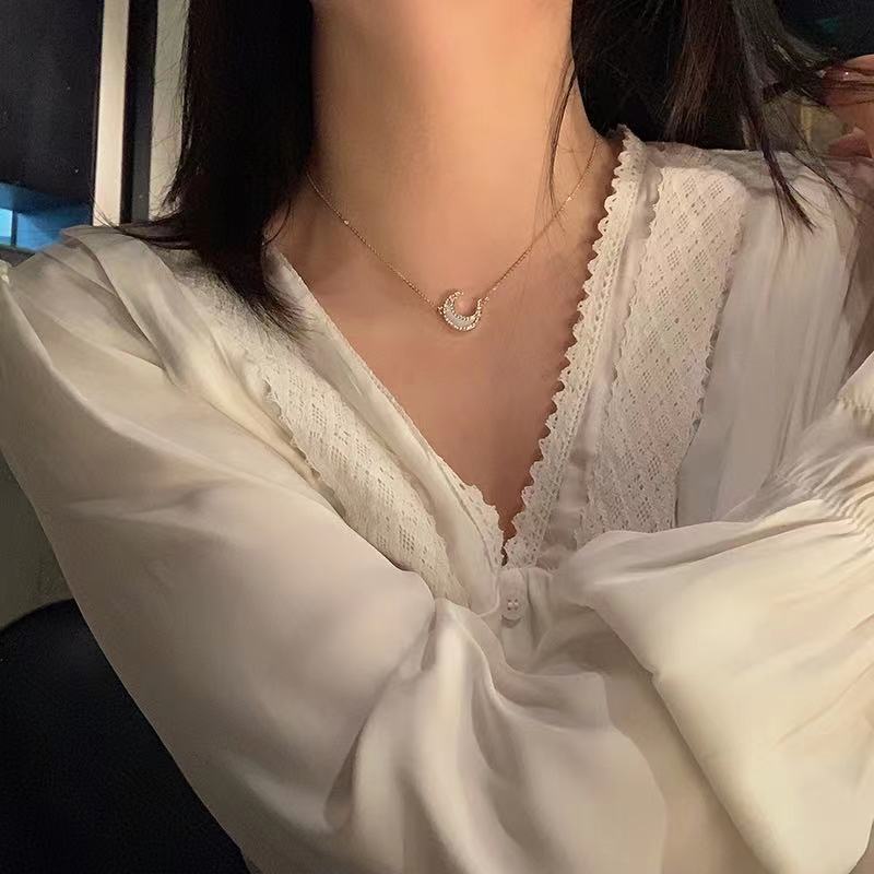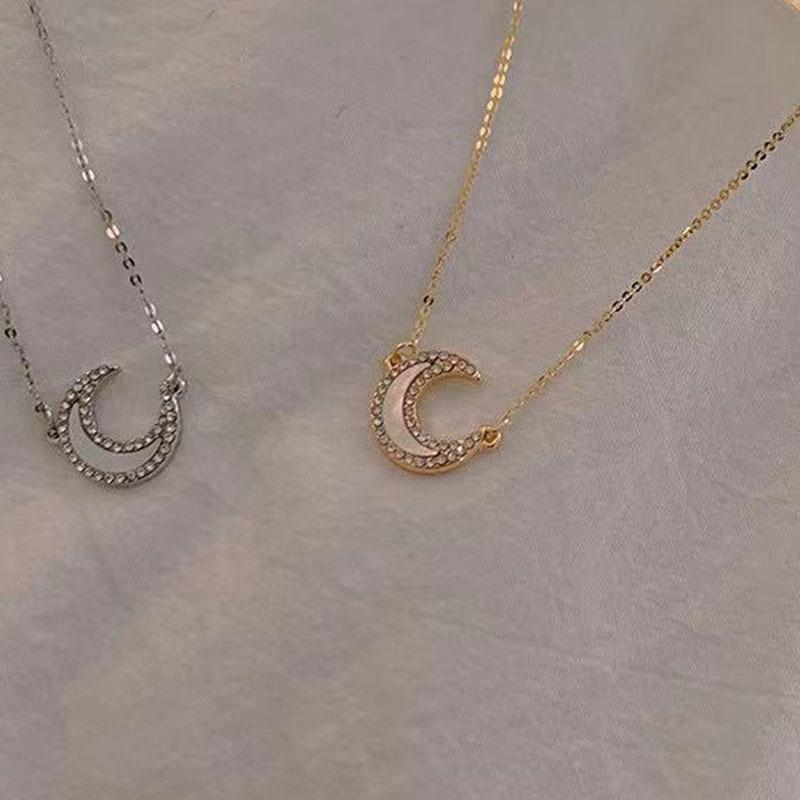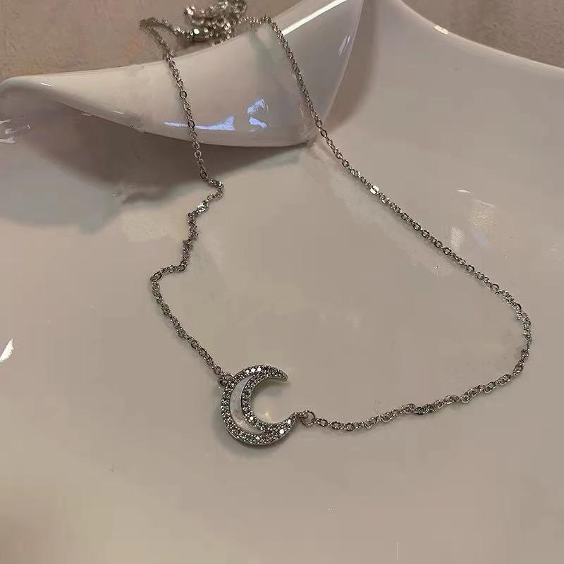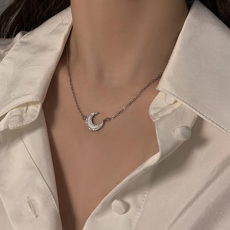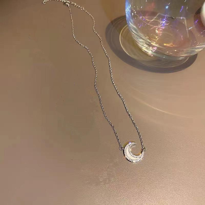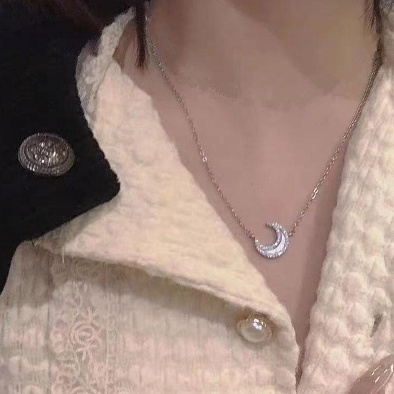 Collar estilo coreano de estilo frío con colgante de luna llena de diamantes, collar sencillo de moda para mujer, joyería para el cuello, cadena de clavícula