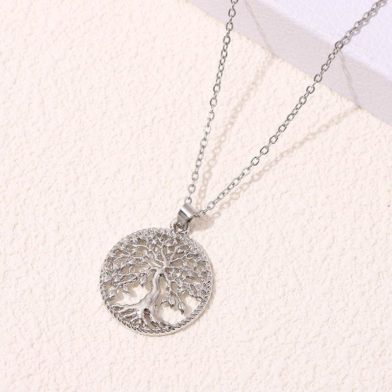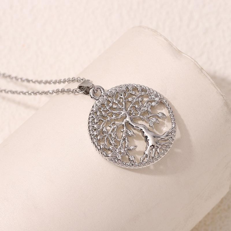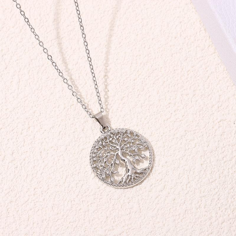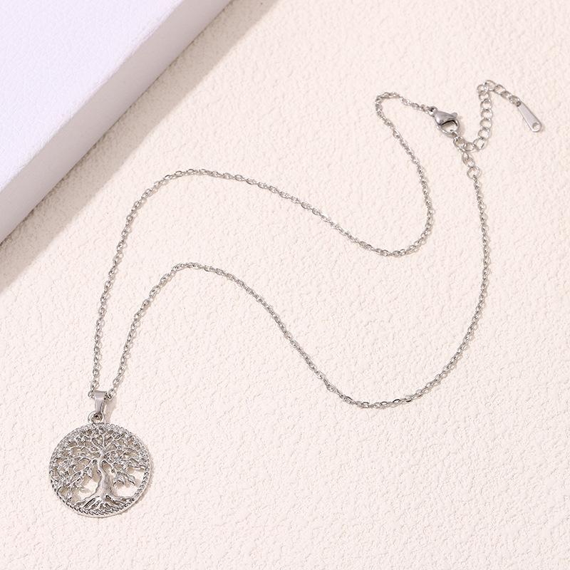 Venta Caliente Transfronteriza Acero Inoxidable Redondo Personalizado Versátil Collar de Alta Gama Moda Europea y Americana Acero Titanio Colgante Árbol de la Vida