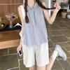 Traje a Rayas de Hombros Descubiertos y Manga Corta para Mujer Verano 2025 Nueva Moda Casual Shorts Traje de Dos Piezas Trendy