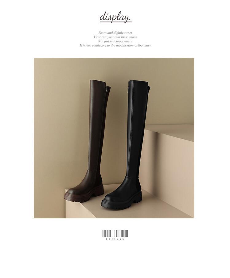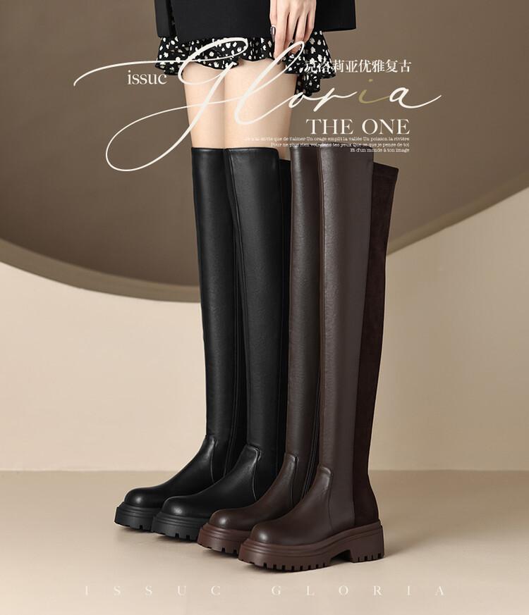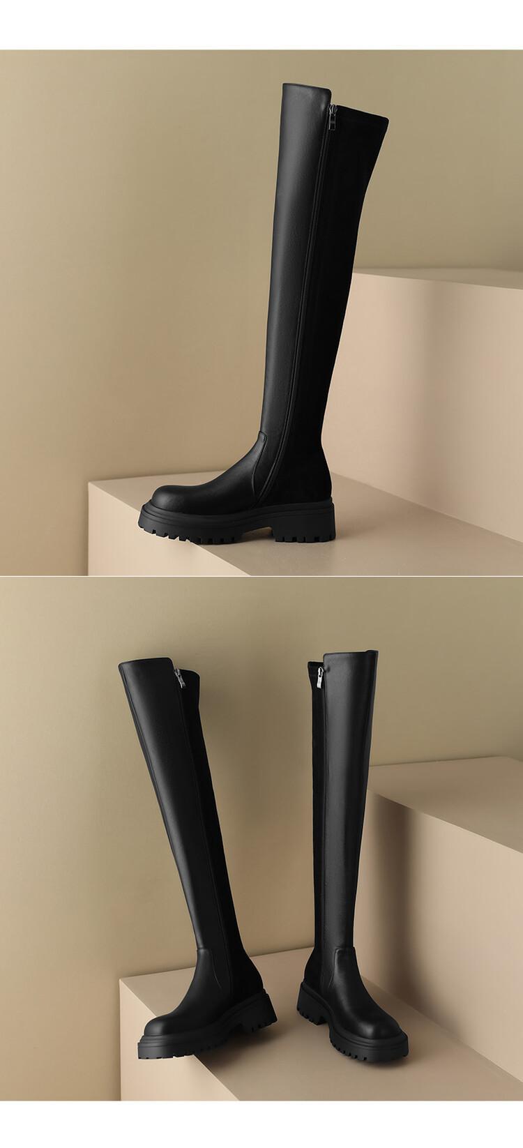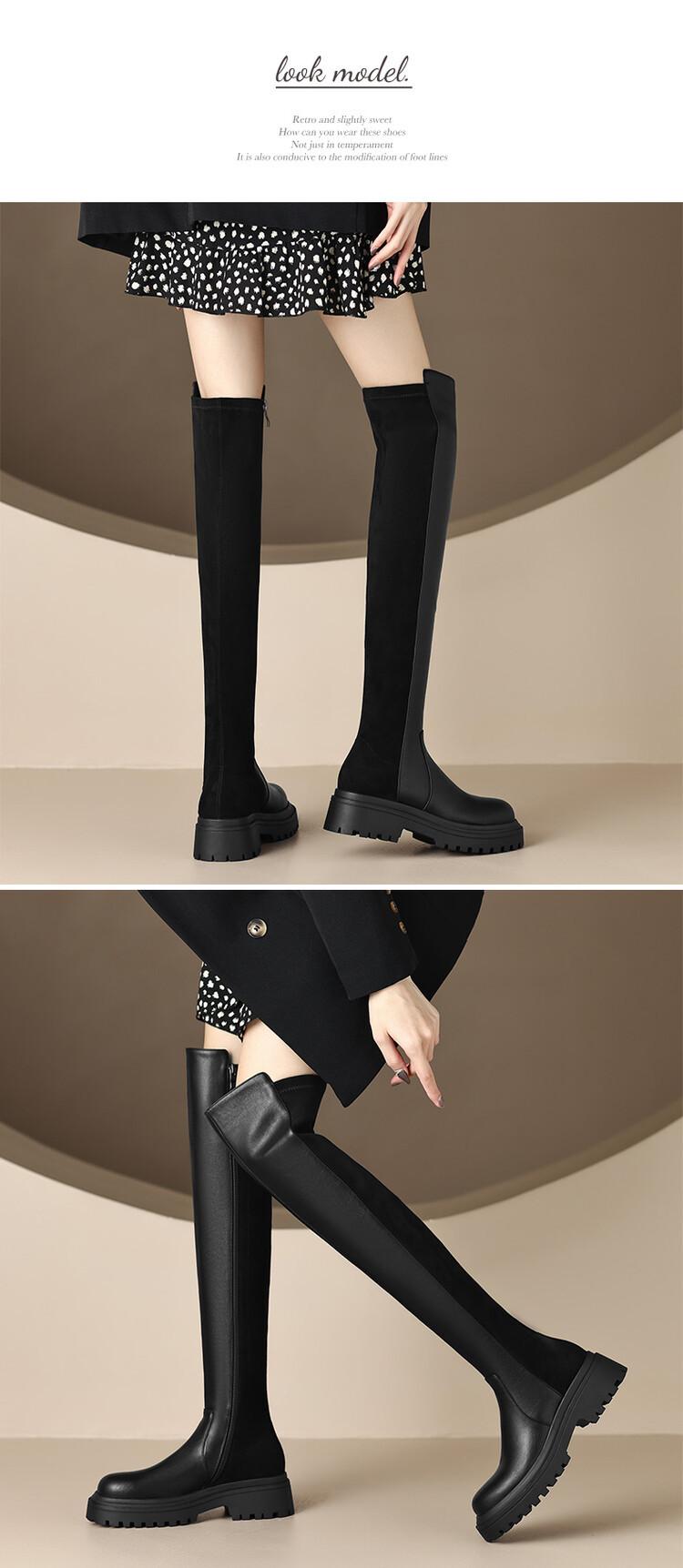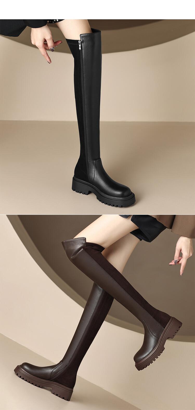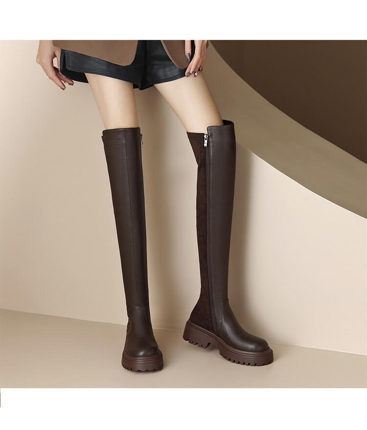 Botas altas hasta el muslo de otoño e invierno para mujer, tacón medio, suela gruesa antideslizante, talla grande, punta redonda, estilo nuevo, gruesas cálidas con cremallera, botas de cuero
