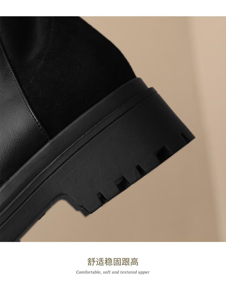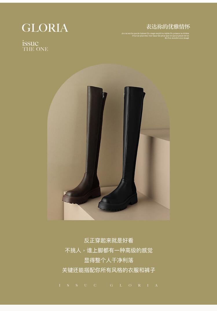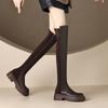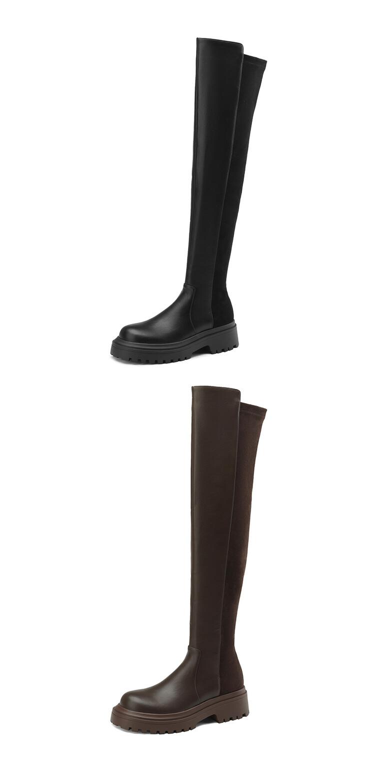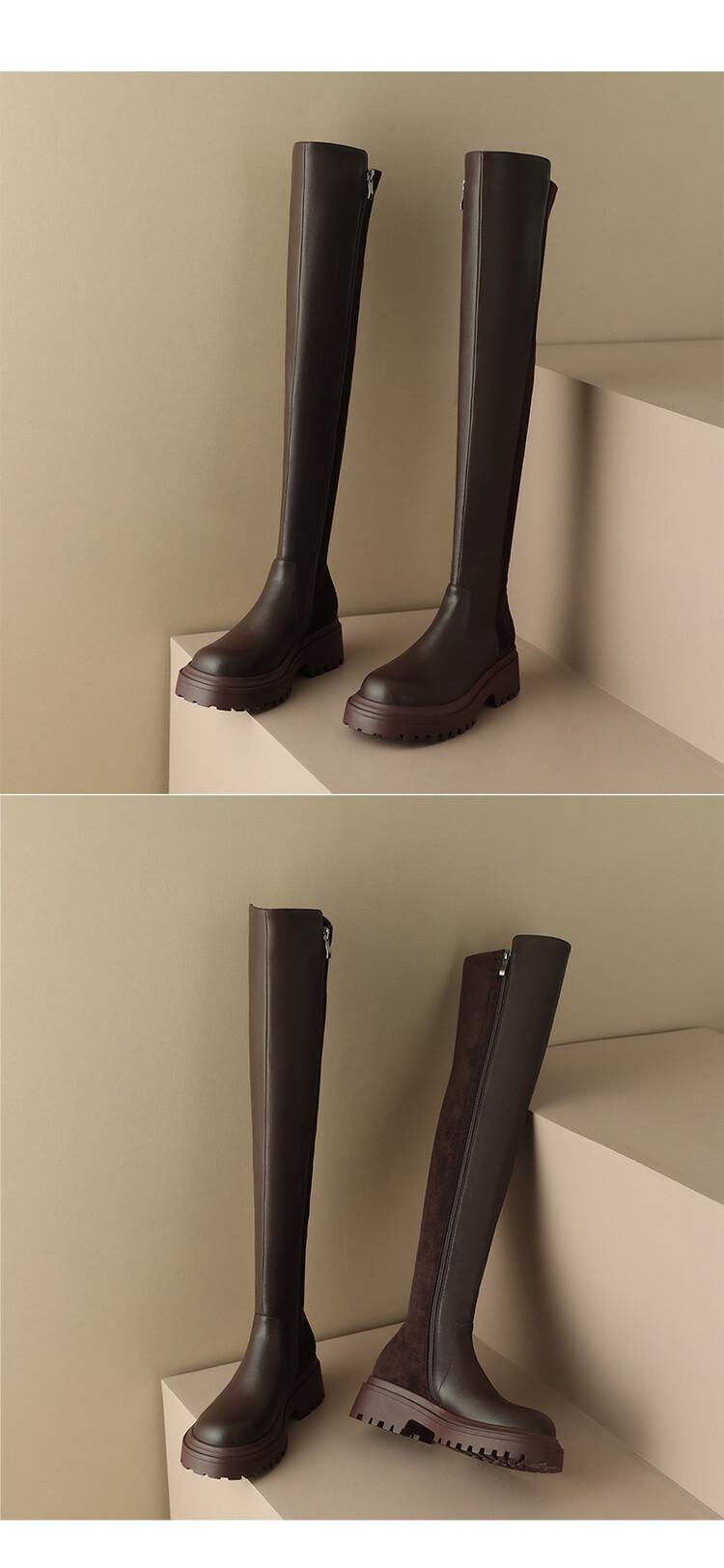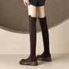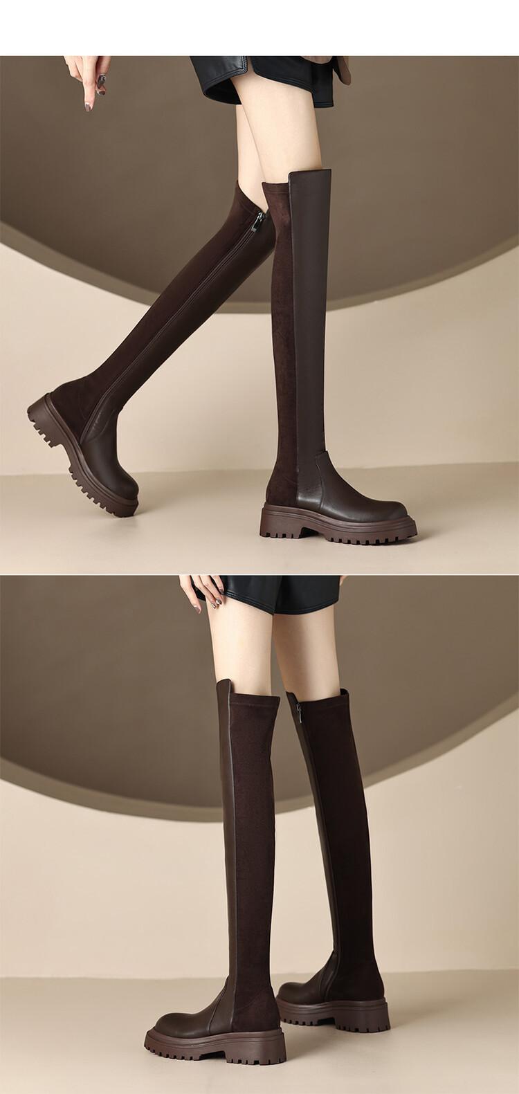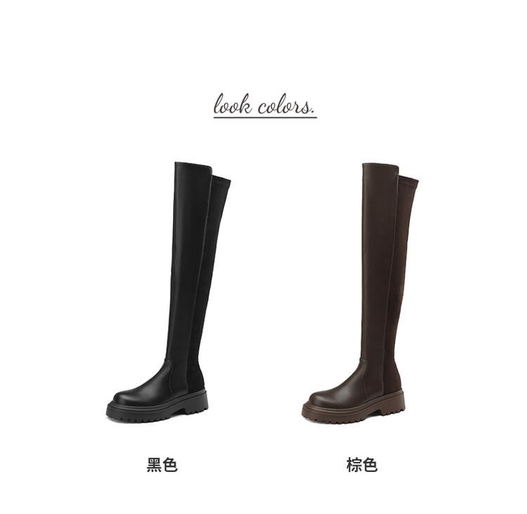 Botas altas hasta el muslo de otoño e invierno para mujer, tacón medio, suela gruesa antideslizante, talla grande, punta redonda, estilo nuevo, gruesas cálidas con cremallera, botas de cuero