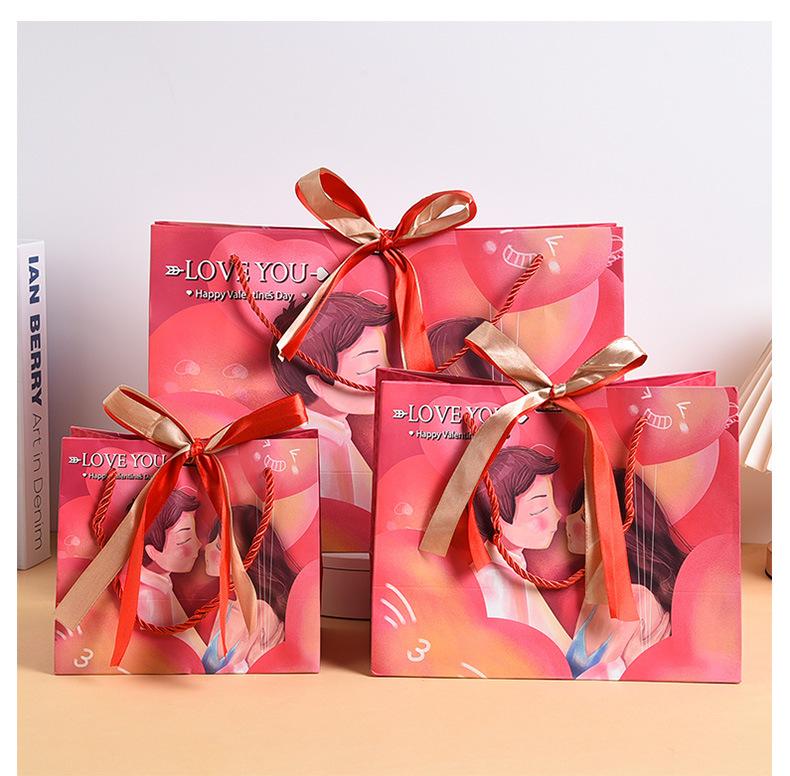 Gradient color gift bag, Cartoon couple pattern gift bag