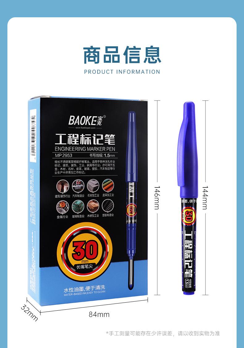 Bolígrafo de marcado de ingeniería Baoke MP2953 resistente al agua que no se desvanece para carpintería, marcado de agujeros profundos, bolígrafo de dibujo de línea extendida 30 mm
