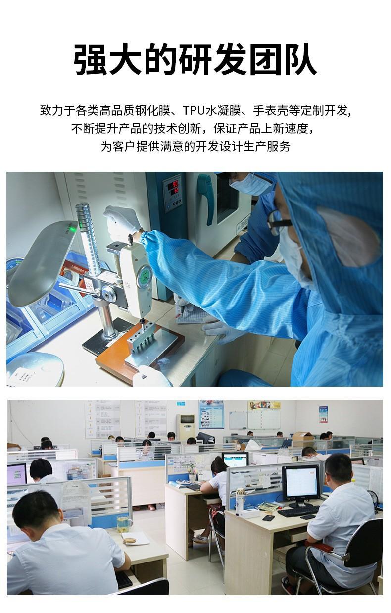 Con más de 40 dispositivos de corte CNC de película de vidrio templado y más de 10 máquinas troqueladoras, la producción diaria de protectores de pantalla de alta calidad puede alcanzar de 500,000 a 1,000,000 de piezas, y las películas de vidrio templado pueden alcanzar 150,000 piezas, lo que puede satisfacer las necesidades de pedidos OEM de los clientes.
