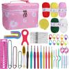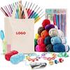 Conjunto completo de 58 piezas de traje de crochet transfronterizo para principiantes, paquete de materiales, herramientas portátiles para tejer lana.