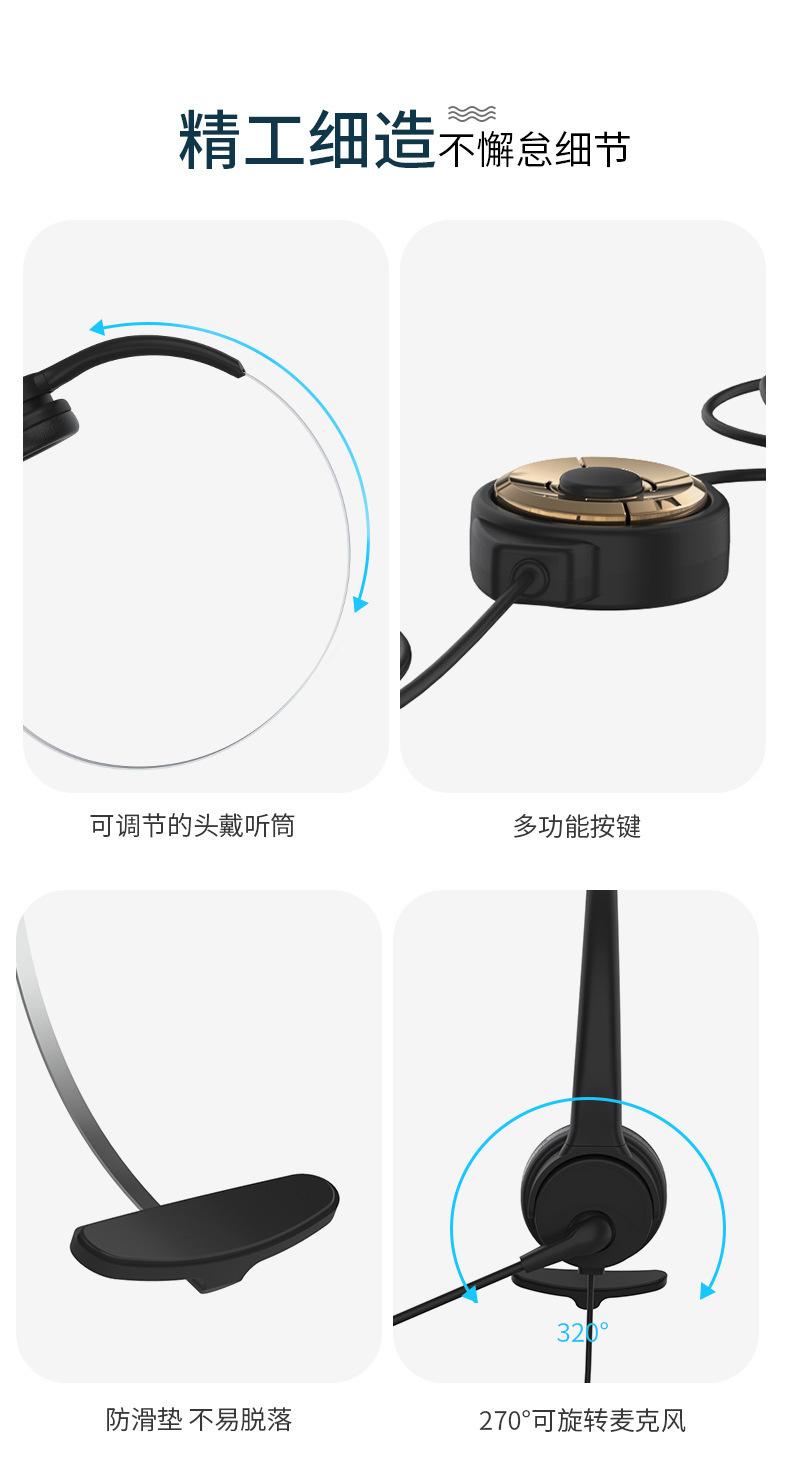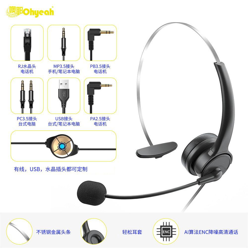 Auricular de Tráfico de Servicio al Cliente de un Solo Oído Micrófono con Reducción de Ruido Auricular con Control de Audio de 3.5 Auricular en Línea para Computadora ENC