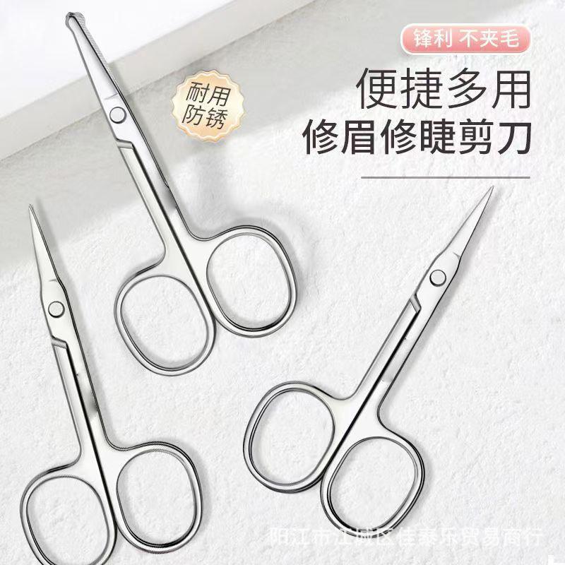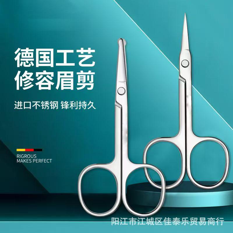 Tijeras para cejas de acero inoxidable tijeras pequeñas A tijeras tijeras para vello nasal boca puntiaguda de codo seguridad cabeza redonda tijeras para recortar cejas tijeras de belleza para maquillaje