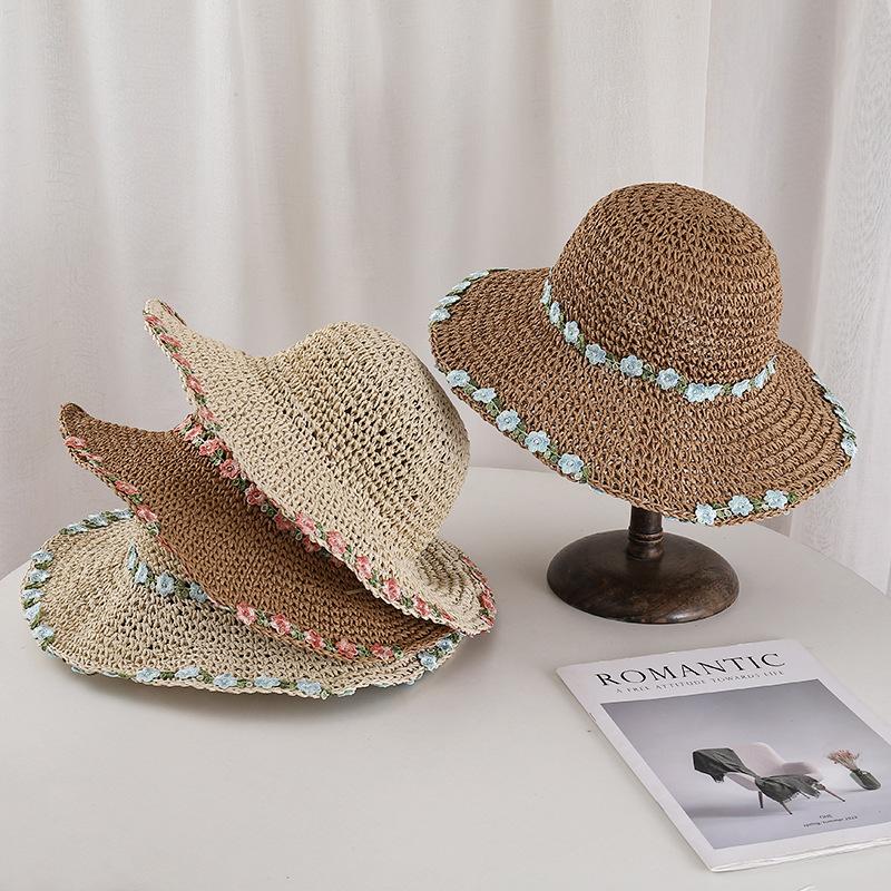 Sombrero de Paja Tejida Arcoíris Sombrero de Cubo para Mujer 2025 Nuevo Verano Sombrero de Protección Solar Sombrero para el Sol Viaje junto al Mar Sombrero de Playa