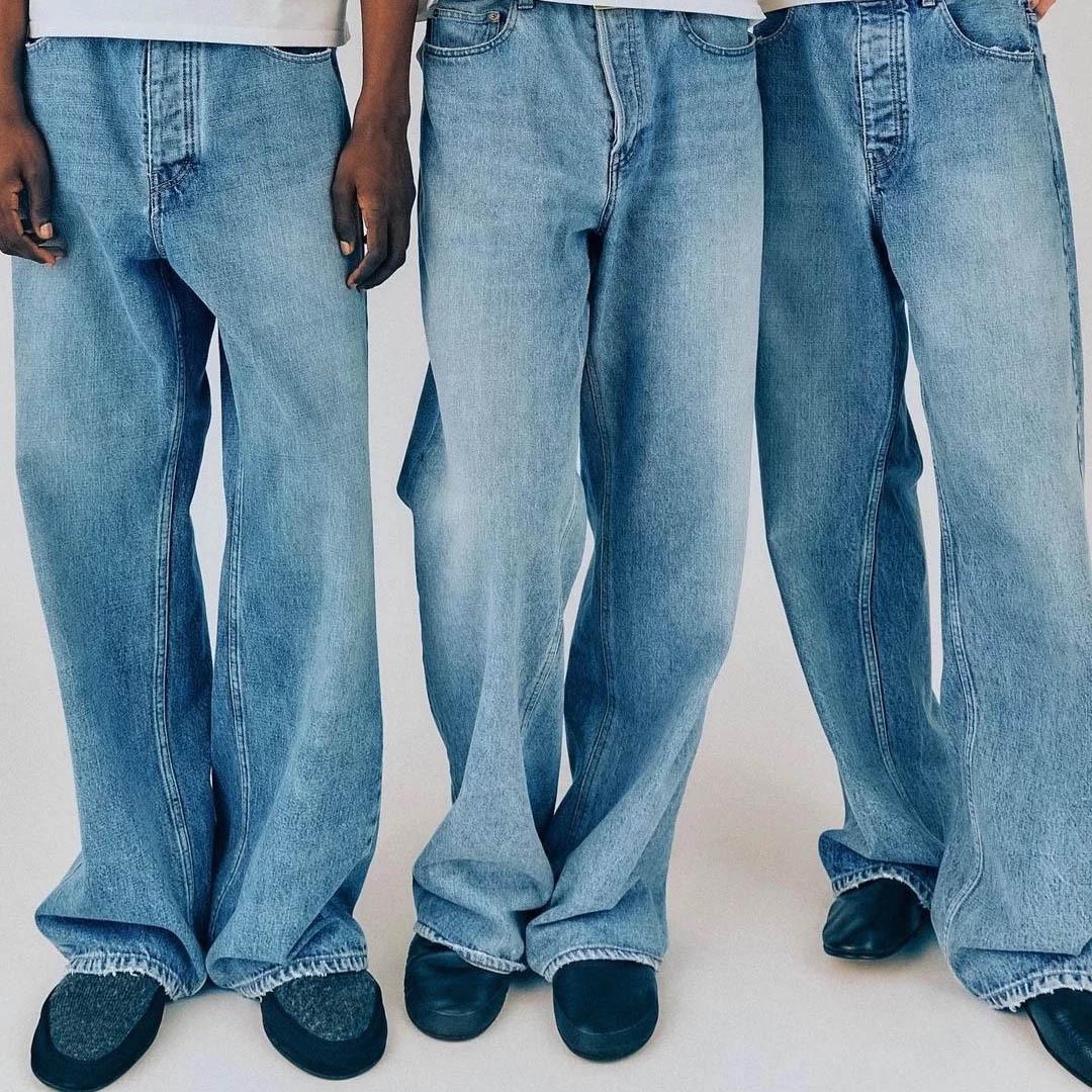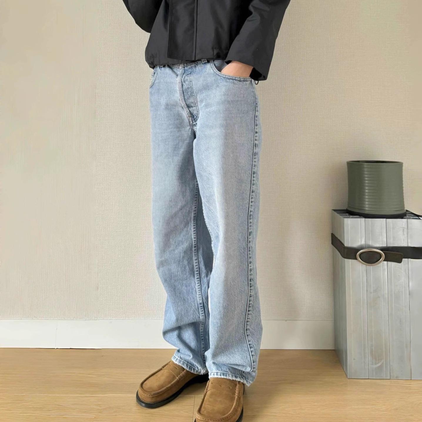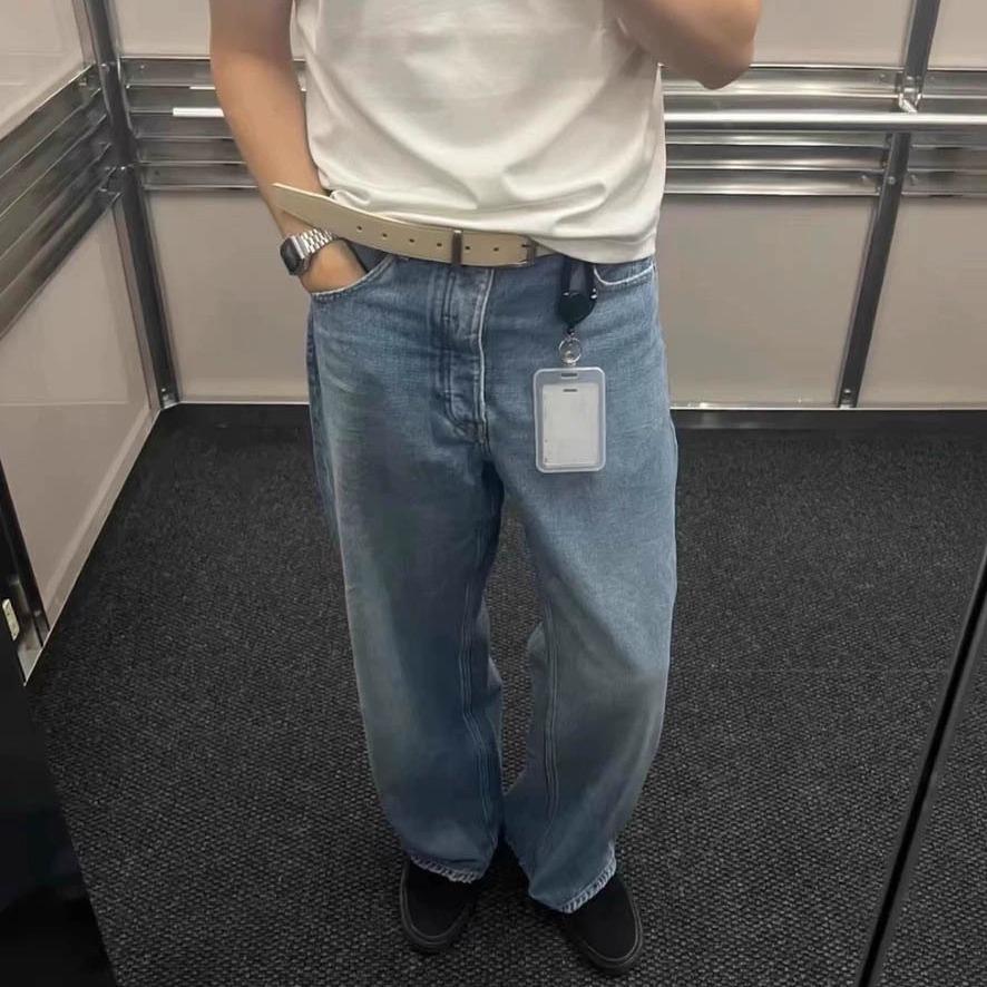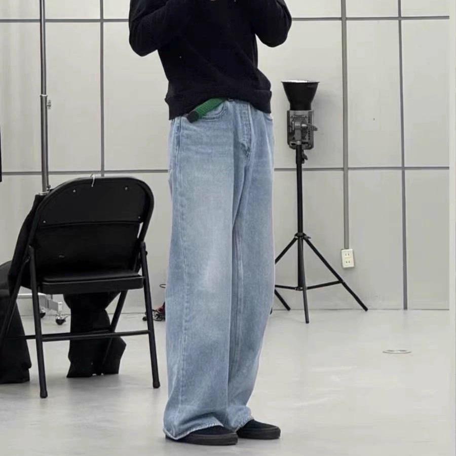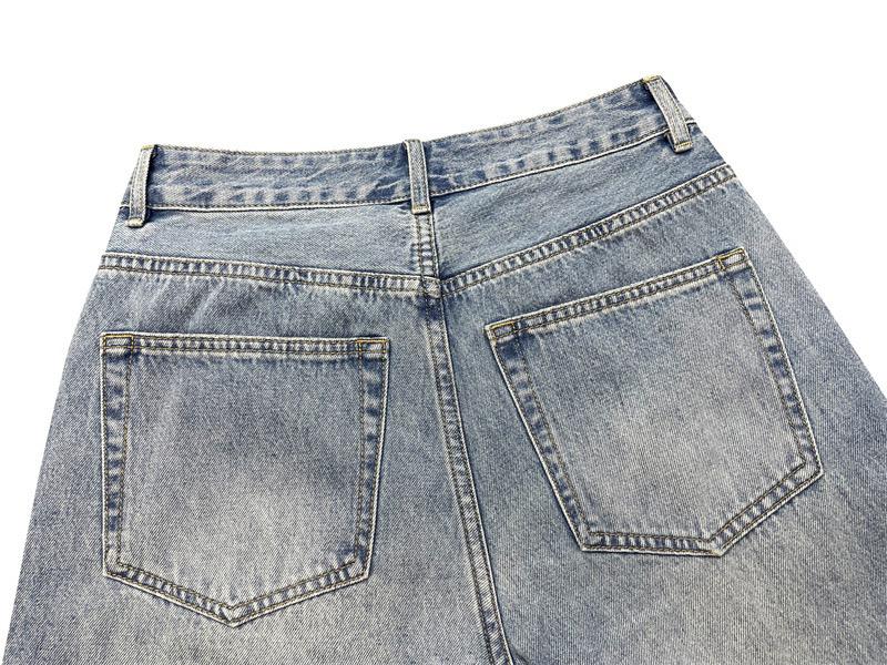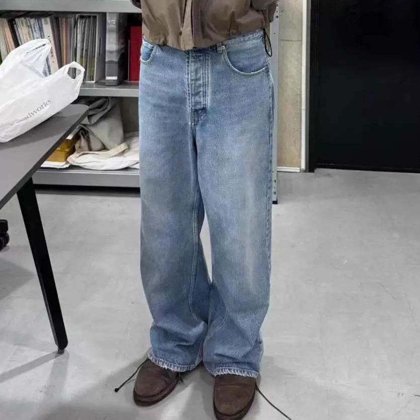Vujade009 American High Street Cleanfit Vibe Retro Jeans Rectos Lavados Desgastados Azules Marca de Moda