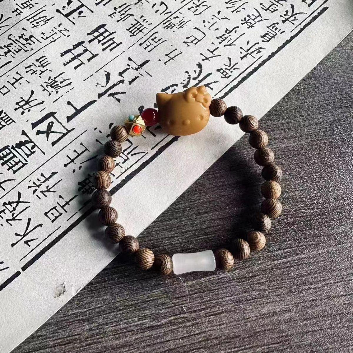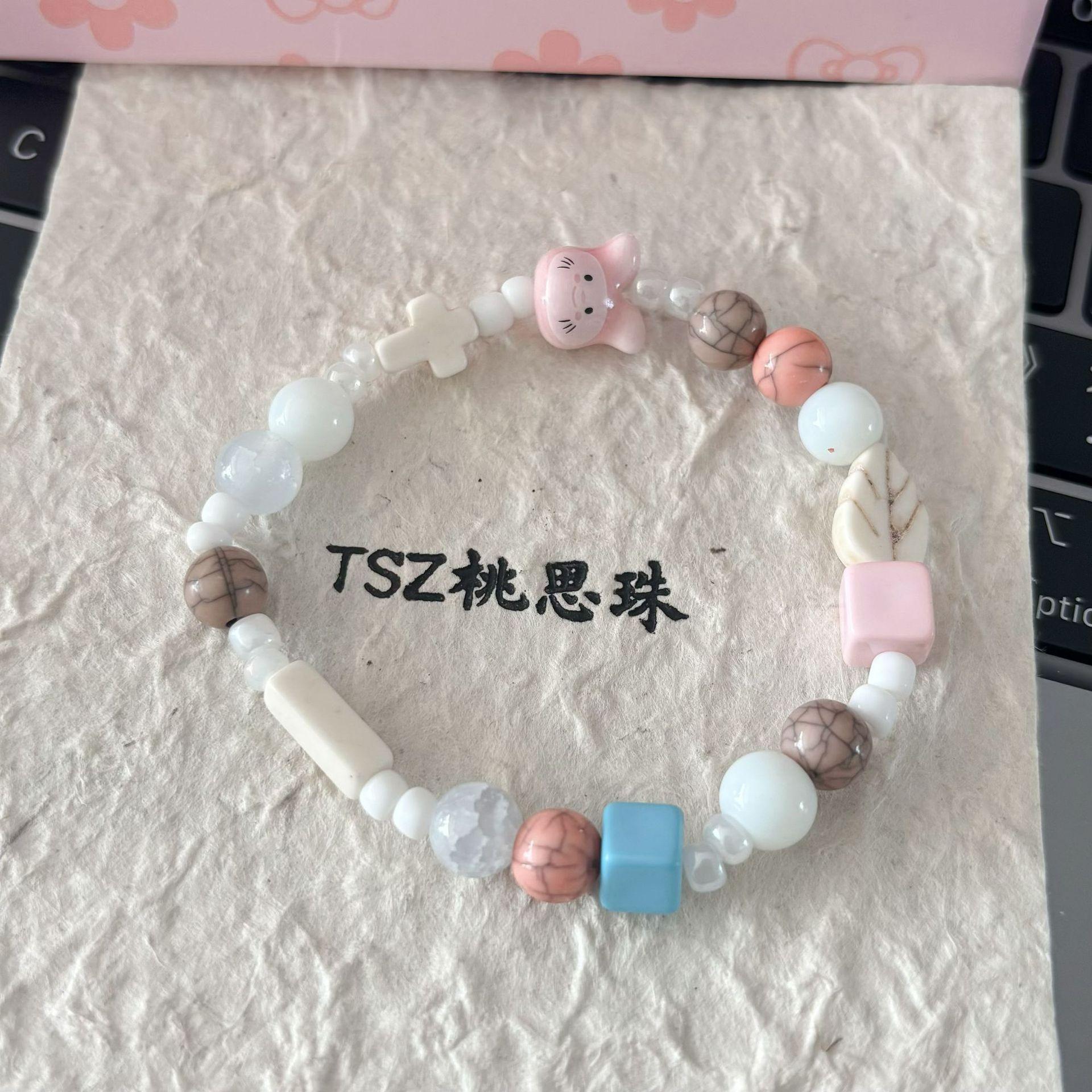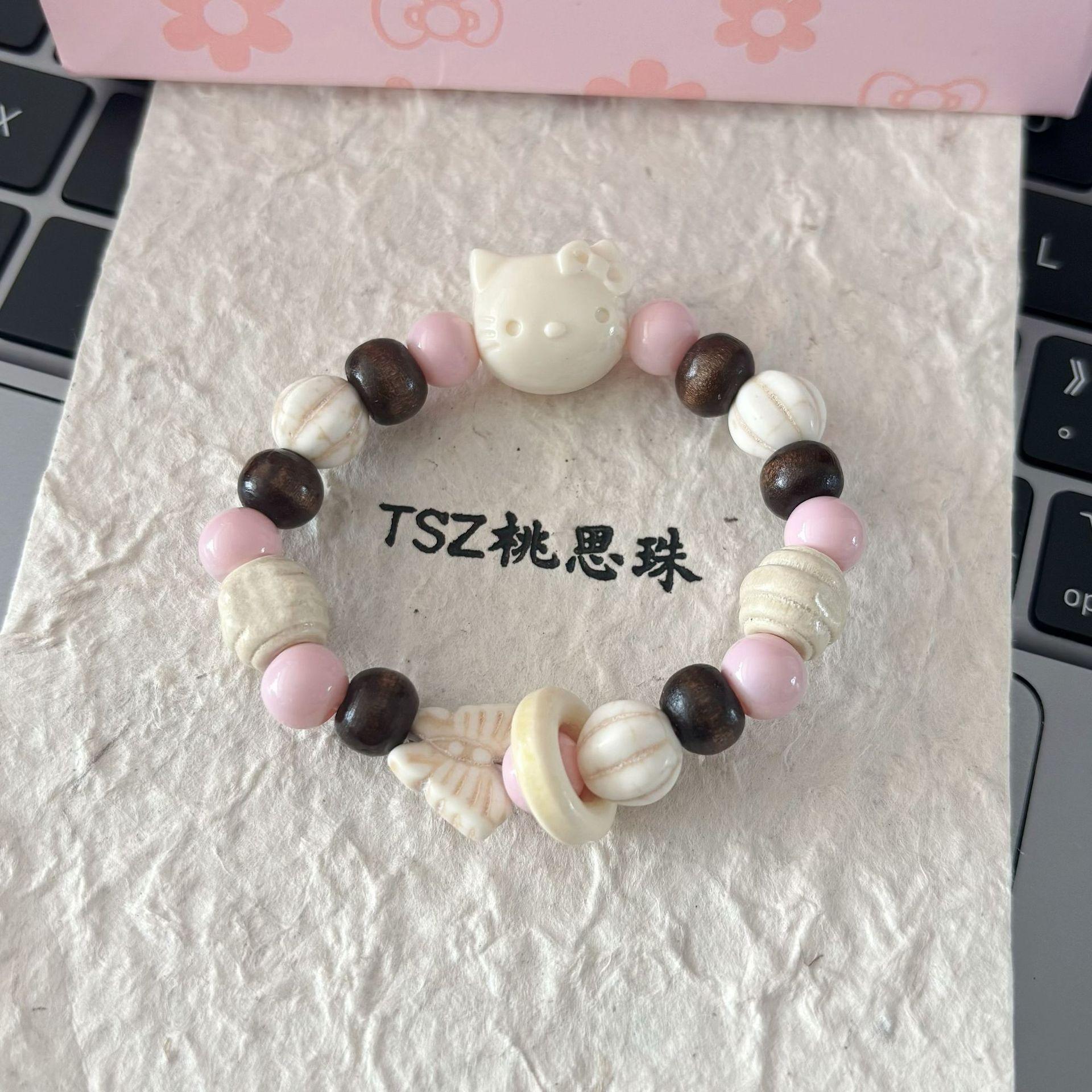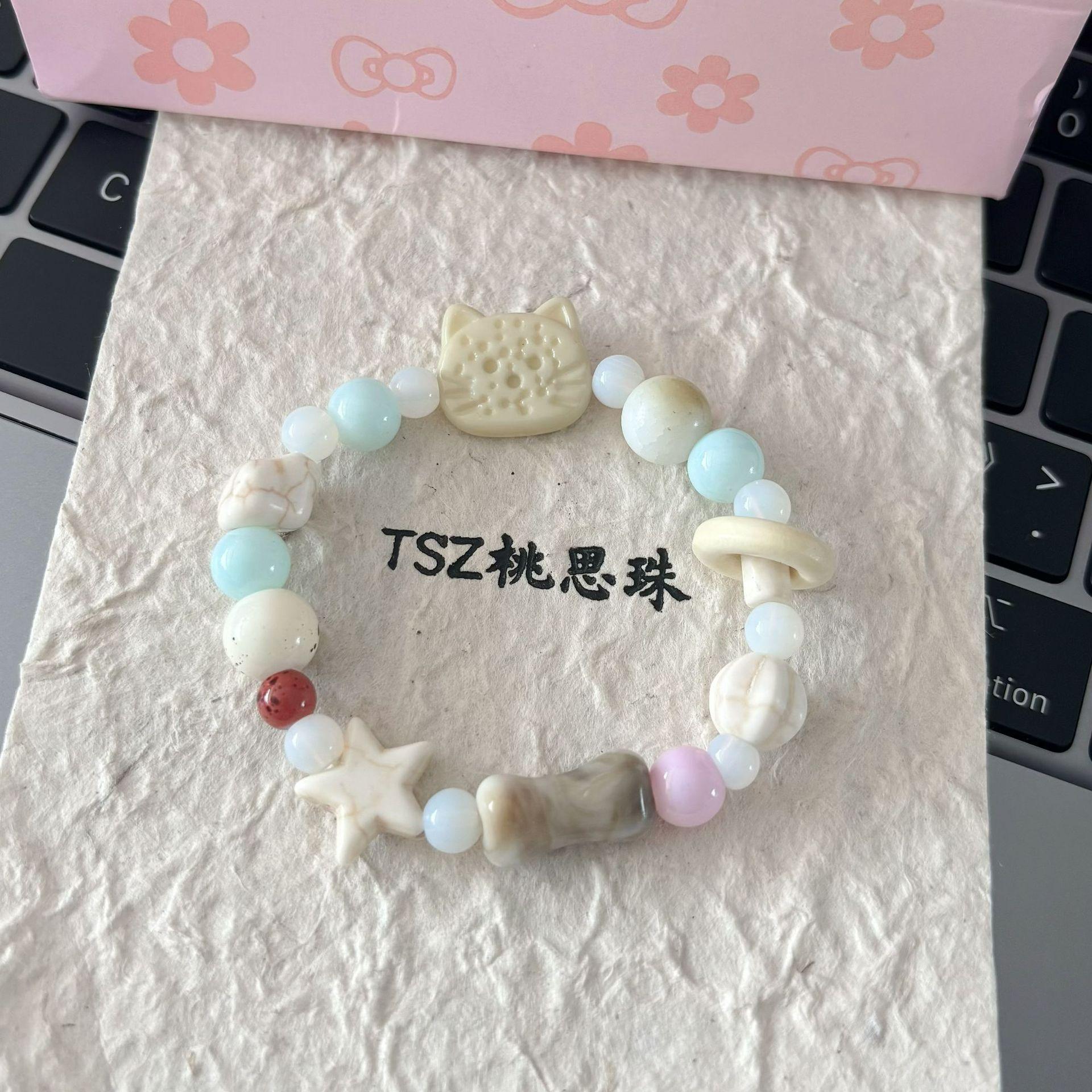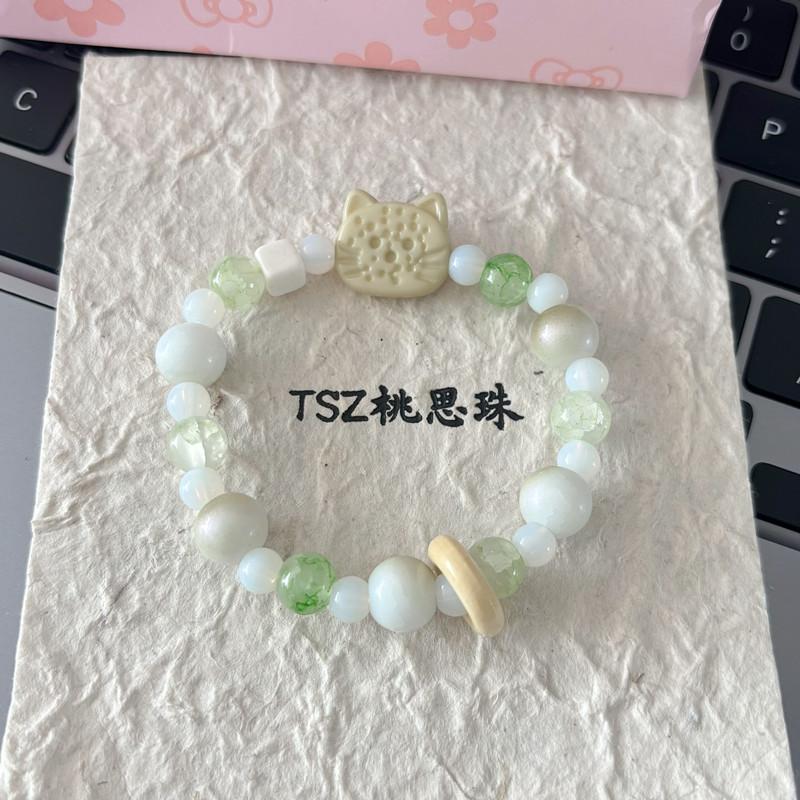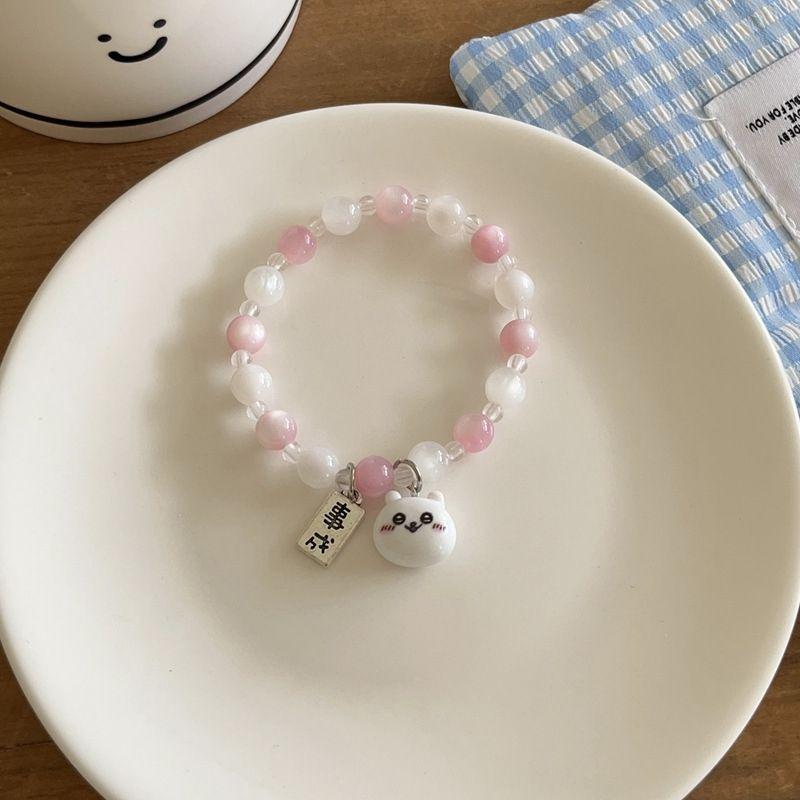 Pulsera de Gato Galleta Fresca y Dulce para Mujer, Colorida con Cuentas, Nicho, Estilo Chino Elegante, Diseño Versátil, Pulsera