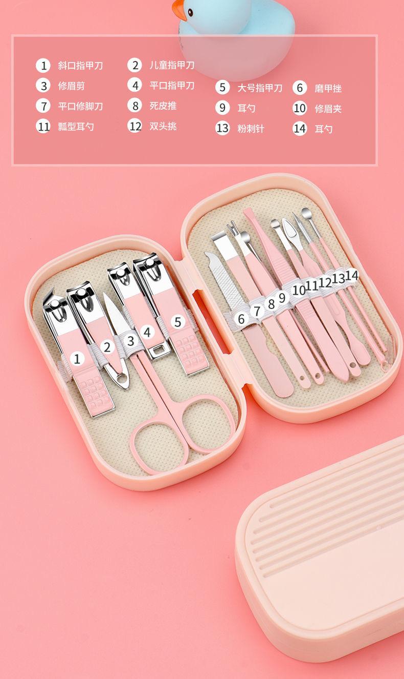 Cortauñas portátil juego de 14 piezas manicura cortauñas herramientas cortauñas de dormitorio traje sacacera