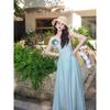 Vestido de Vacaciones de Playa Floral con Nido de Abeja Estilo Francés, Volantes en el Busto, Lazo, Bloque de Color, Tirantes Espagueti