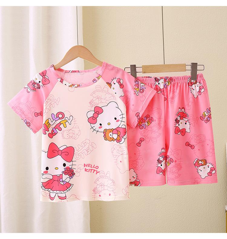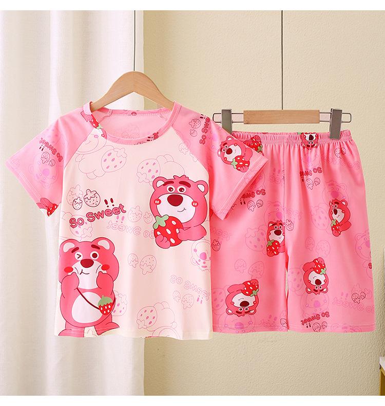 Pijamas para niños Niños Niños Niños Medianos y Mayores Niñas Verano Delgadas Primavera y Verano Ropa para el Hogar de Día de Manga Corta para Aire Acondicionado