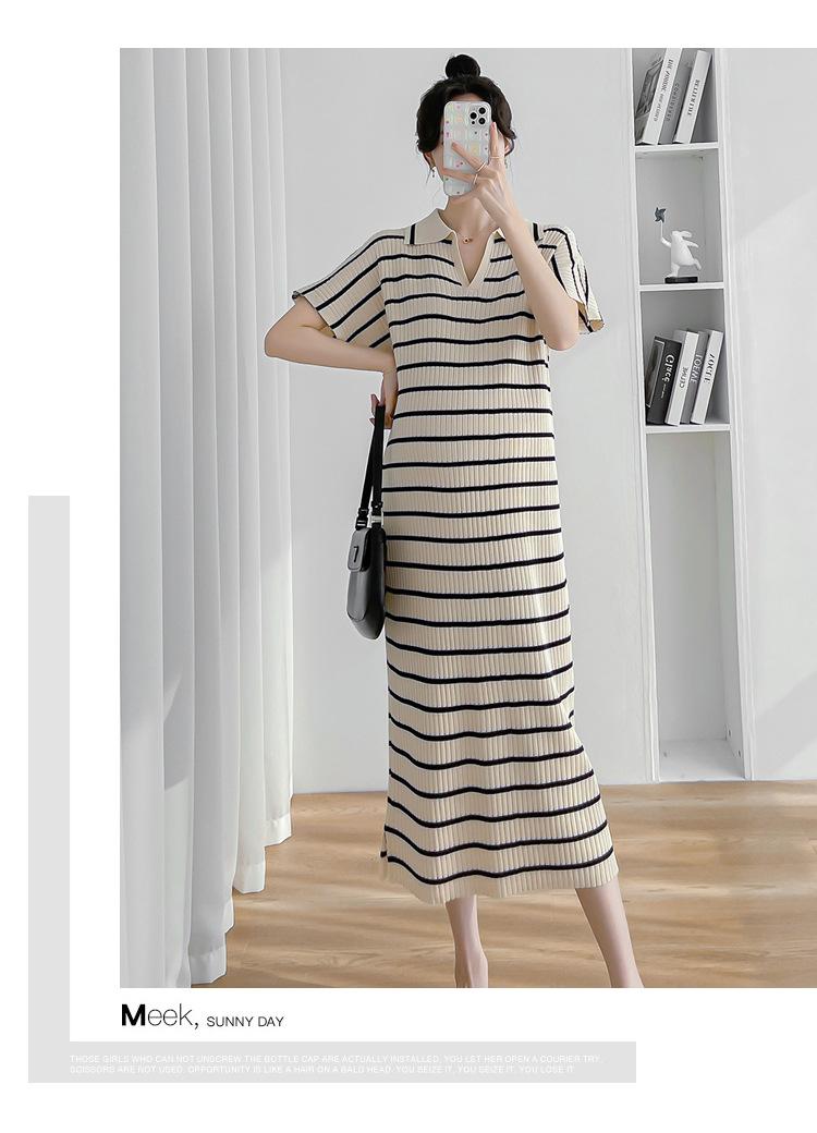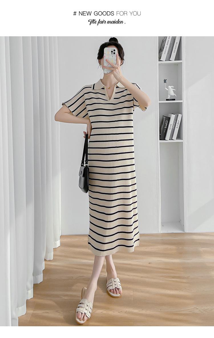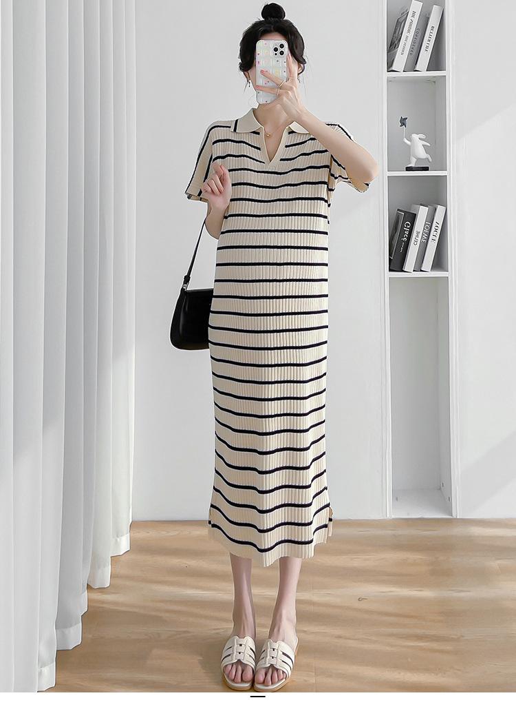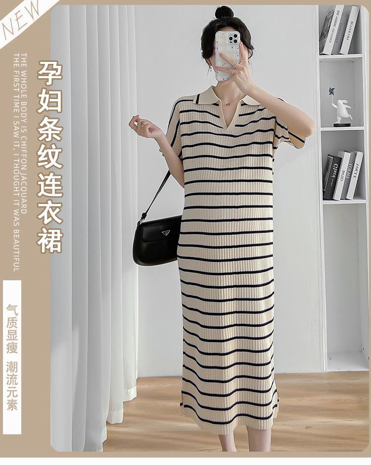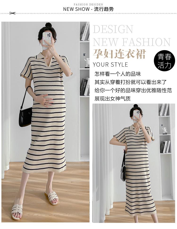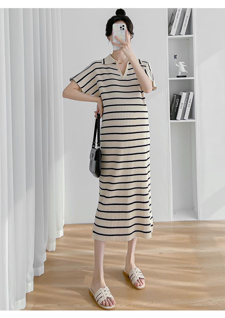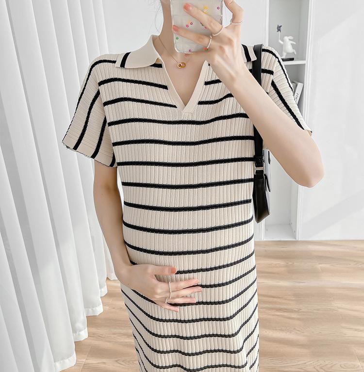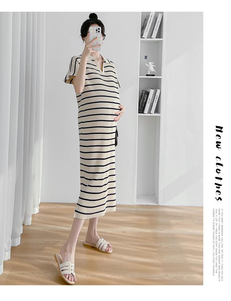 Vestido de punto holgado largo de verano para maternidad nuevo moda coreana a rayas con solapa