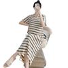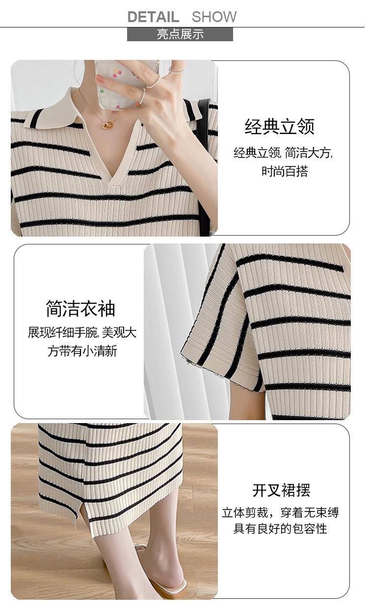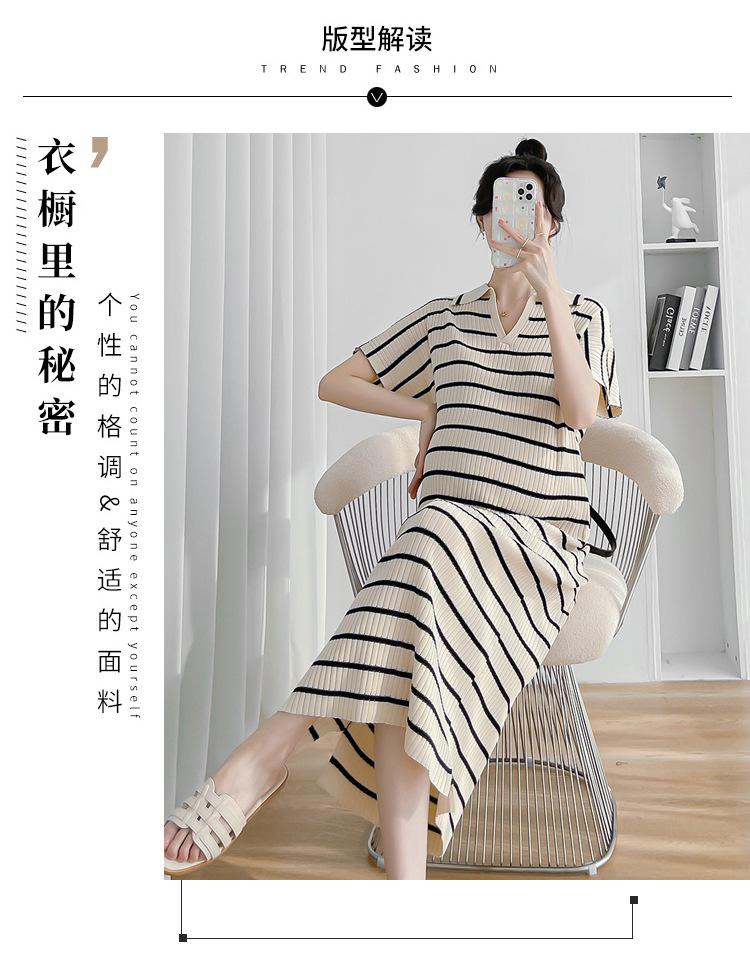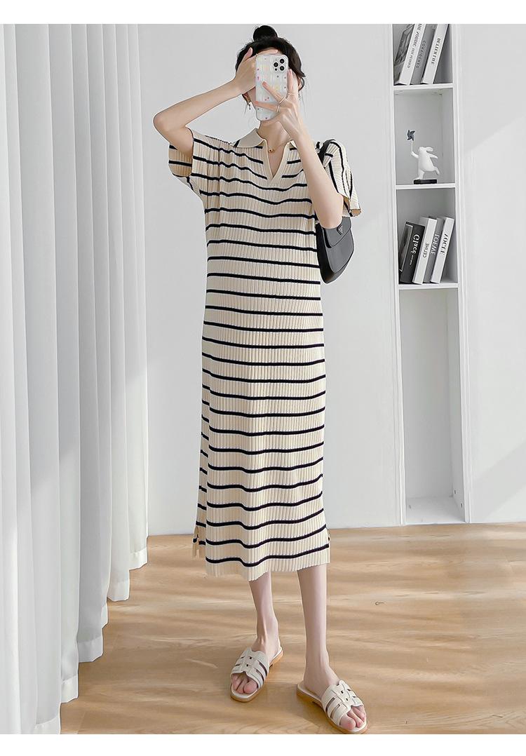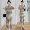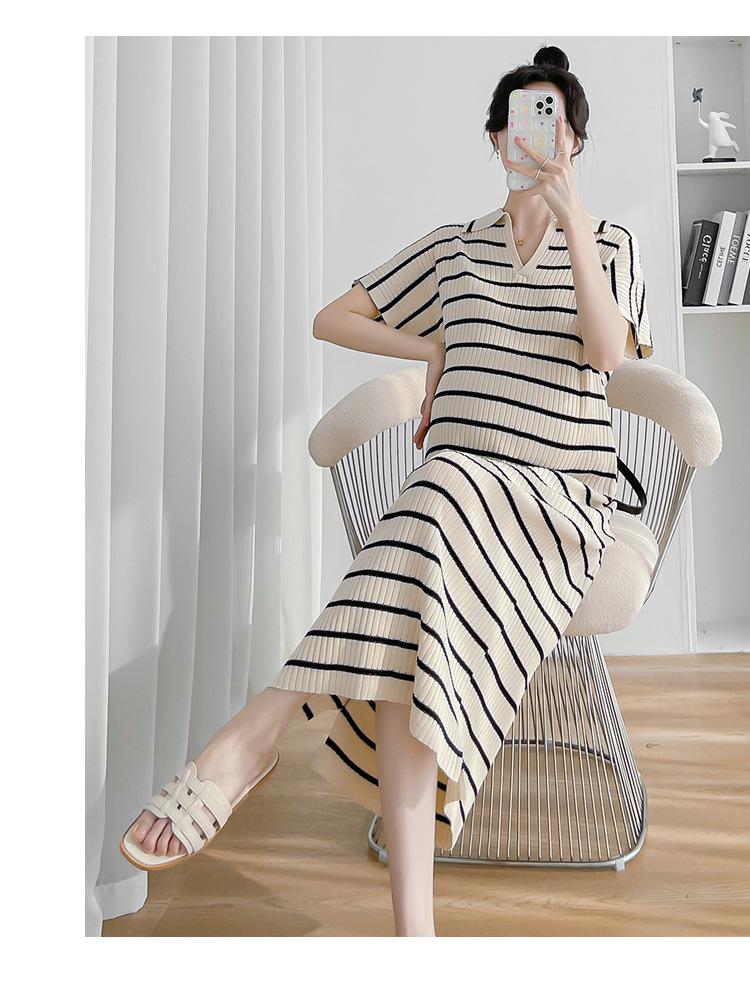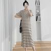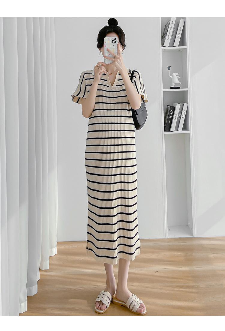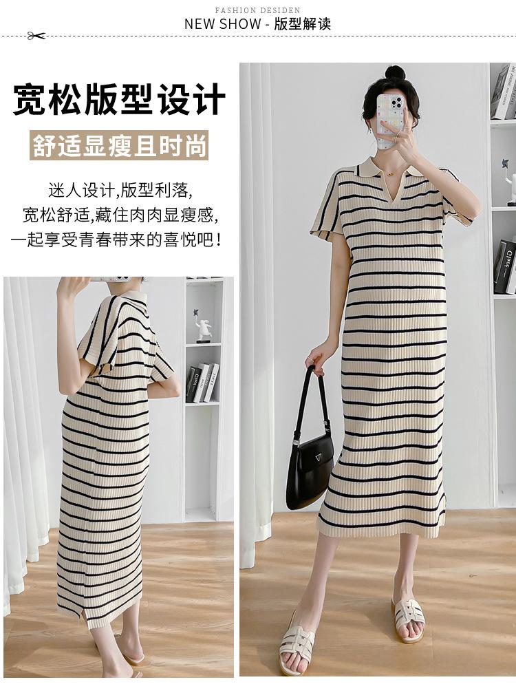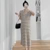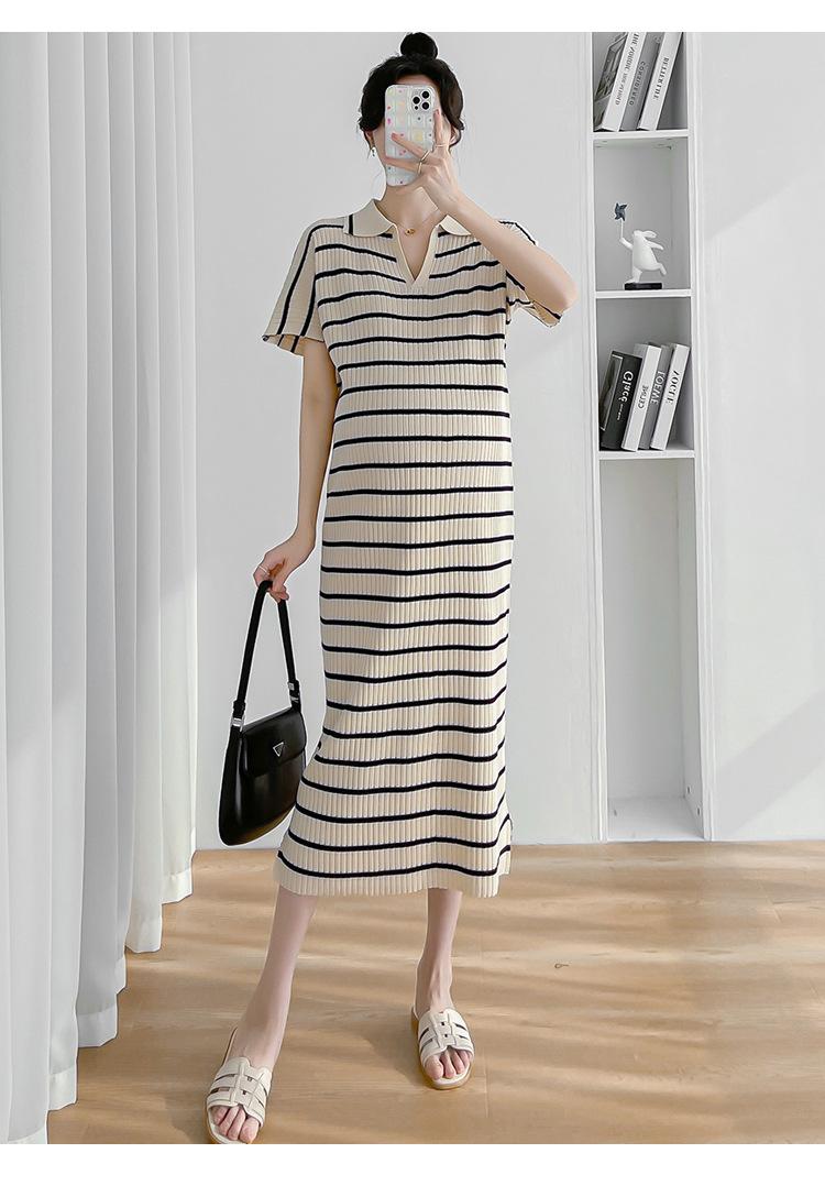 Vestido de punto holgado largo de verano para maternidad nuevo moda coreana a rayas con solapa