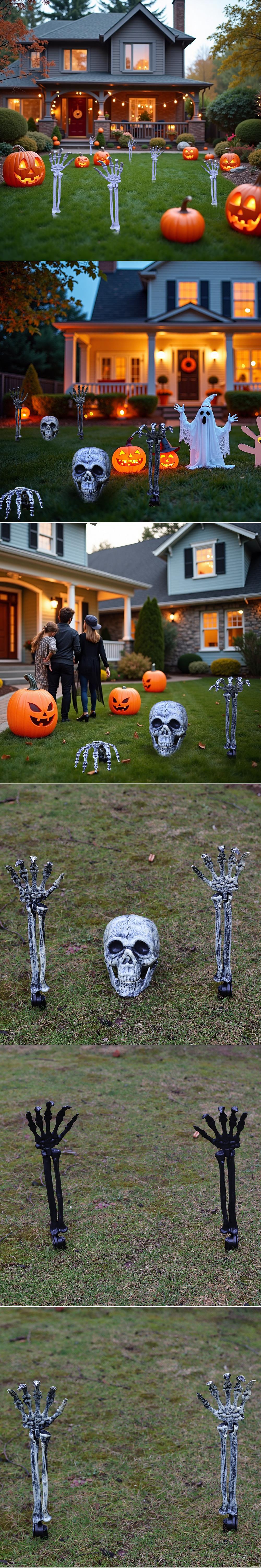 Halloween Transfronterizo Estaca de Suelo Cráneo Mano de Esqueleto Festival Fantasma Decoración de Patio Accesorios Adornos Conjunto de Tres Piezas Mano de Esqueleto Hueso