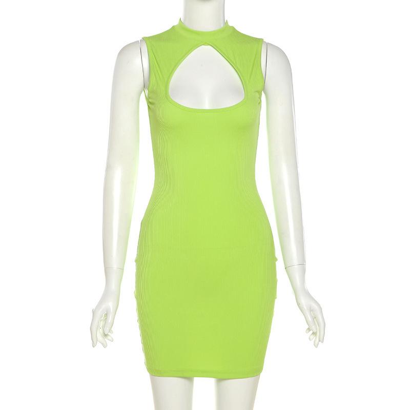 2024 Ropa de verano para mujer estilo europeo y americano Moda INS sexy hueco delgado delgado sin mangas cuello redondo vestido de cadera