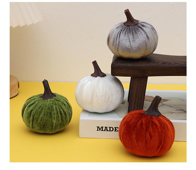 Decoraciones de Calabaza Artificial para Festival de la Cosecha Nueva Tela Flocada Calabaza de Otoño Dorado Calabaza de Acción de Gracias Accesorios de Decoración